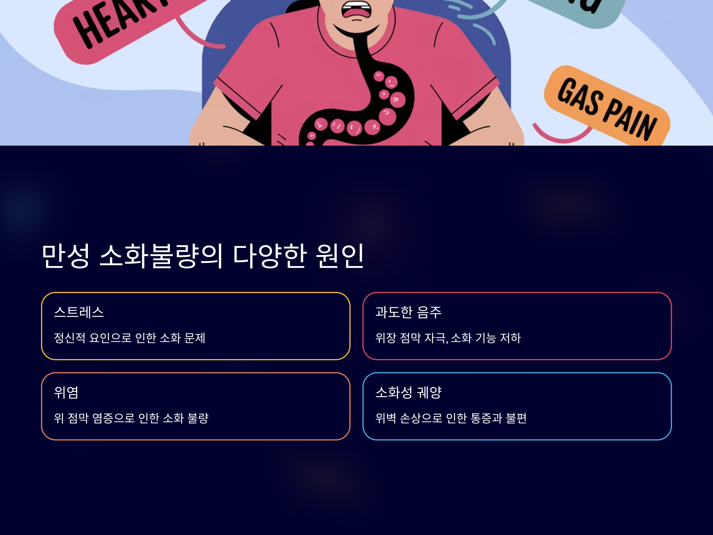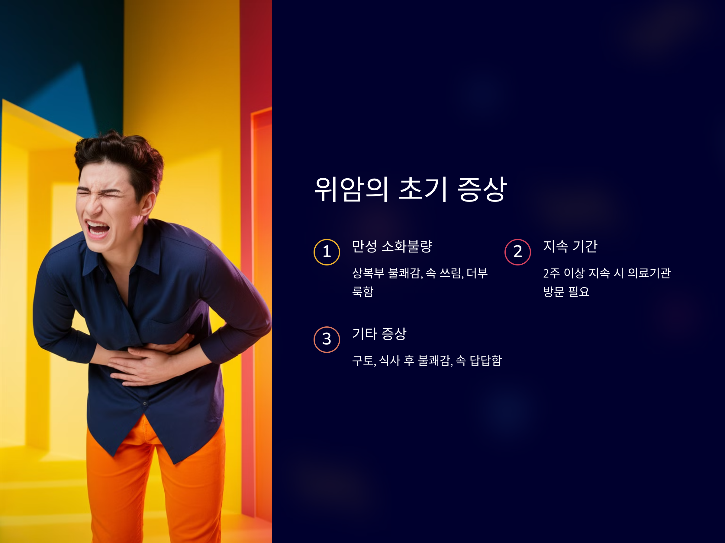 만성 소화불량은 위장에 부담을 주는 음식이나 스트레스, 과음 등으로 인해 발생할 수 있습니다. 그러나 소화불량 증상이 지속되거나 점차 심해진다면, 단순한 소화기 장애가 아닌 위암의 전조증상일 가능성이 있습니다.