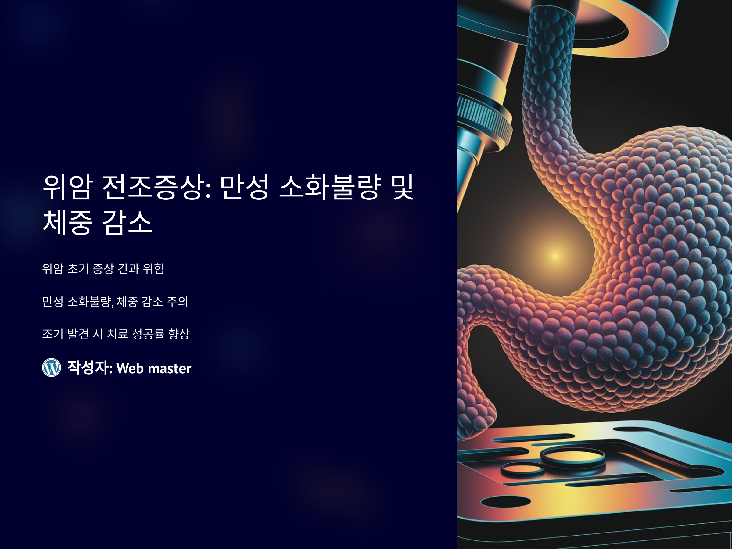 최근 연구에 따르면, 위암을 조기에 발견하면 치료 성공률이 크게 향상된다고 합니다. 따라서 위암에 대한 정확한 정보와 이를 구분할 수 있는 방법을 아는 것이 중요합니다. 아래에서는 위암 전조증상 중 만성 소화불량과 체중 감소가 어떤 의미를 지니는지에 대해 알아보겠습니다.