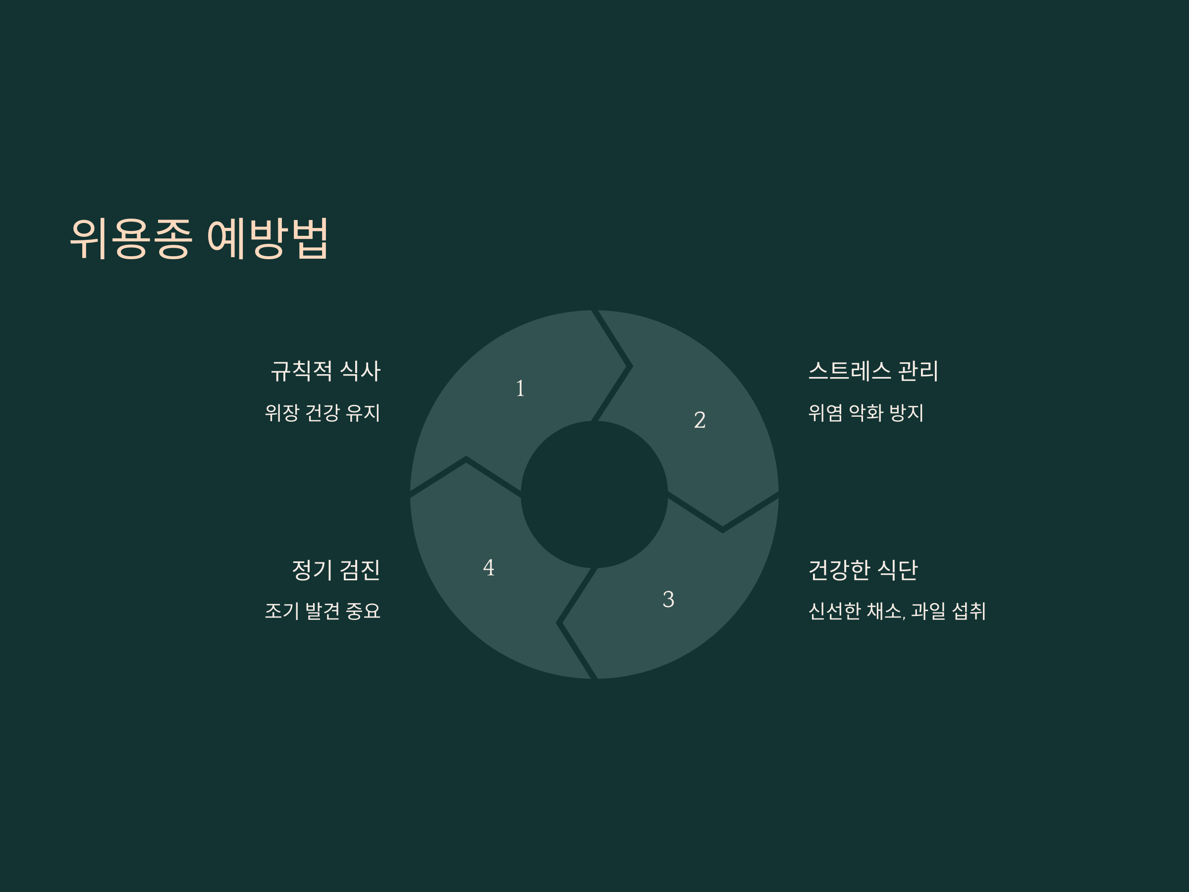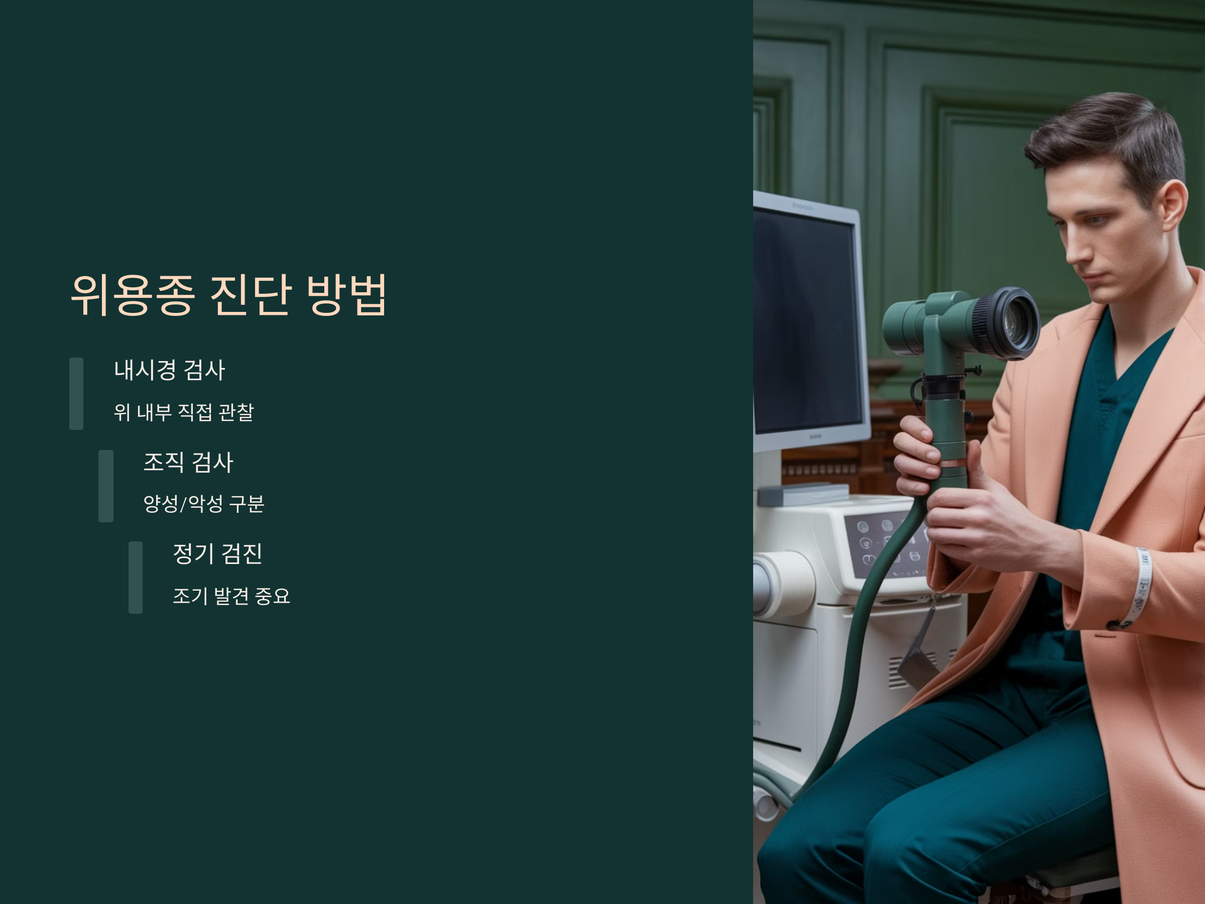 - 정기적인 건강 검진: 위용종은 초기에는 증상이 없을 수 있기 때문에, 정기적인 건강 검진을 통해 미리 발견하는 것이 중요합니다.