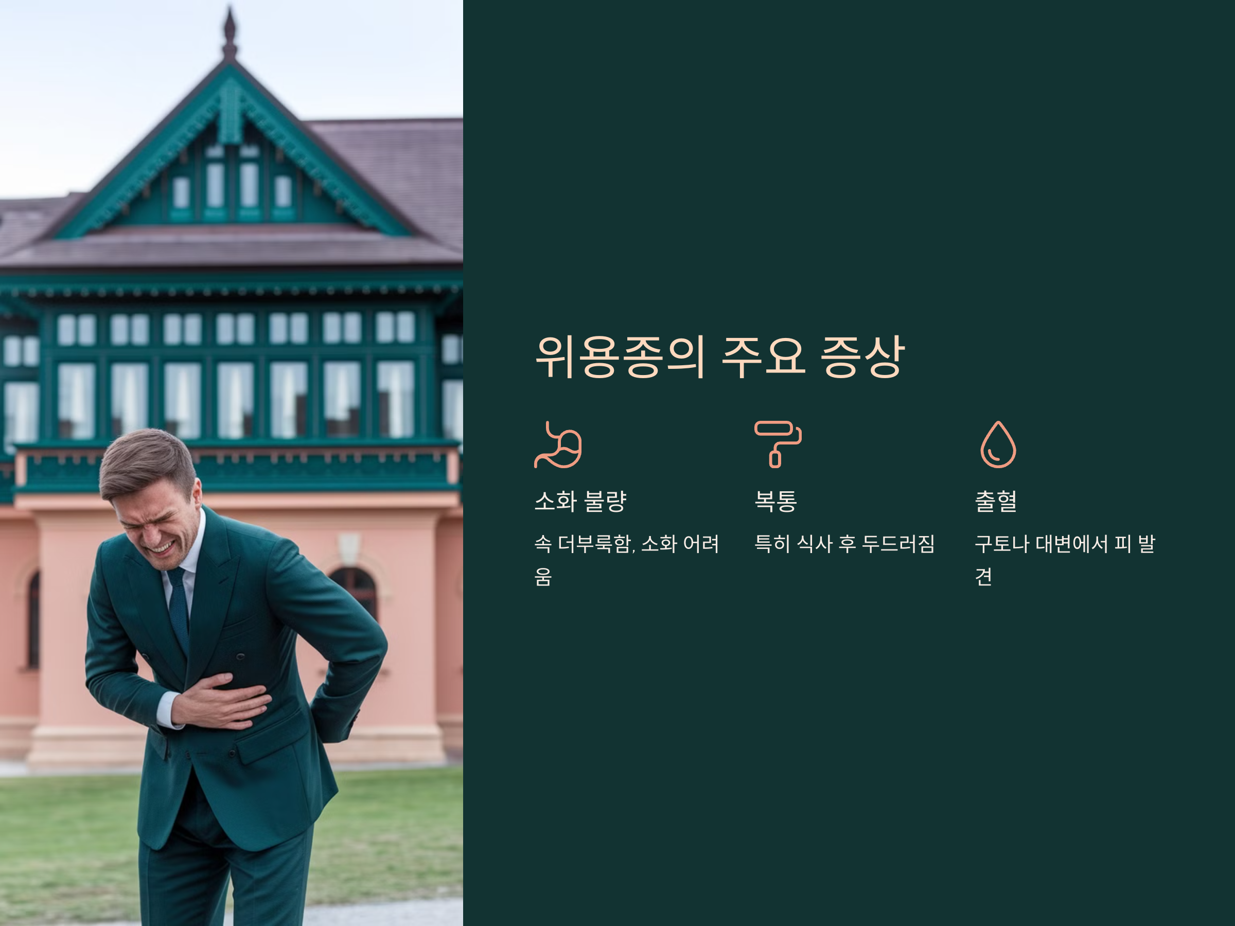 소화 불량과 출혈은 위용종과 관련된 주요 증상으로, 이를 통해 질환이 악화되기 전에 조기에 발견하고 치료하는 것이 중요합니다. 위용종의 진단과 치료 방법을 잘 알고 대비하면, 큰 문제를 예방할 수 있습니다. 특히 출혈이 발생하면 상태가 심각해질 수 있으므로, 증상에 주의해야 합니다.