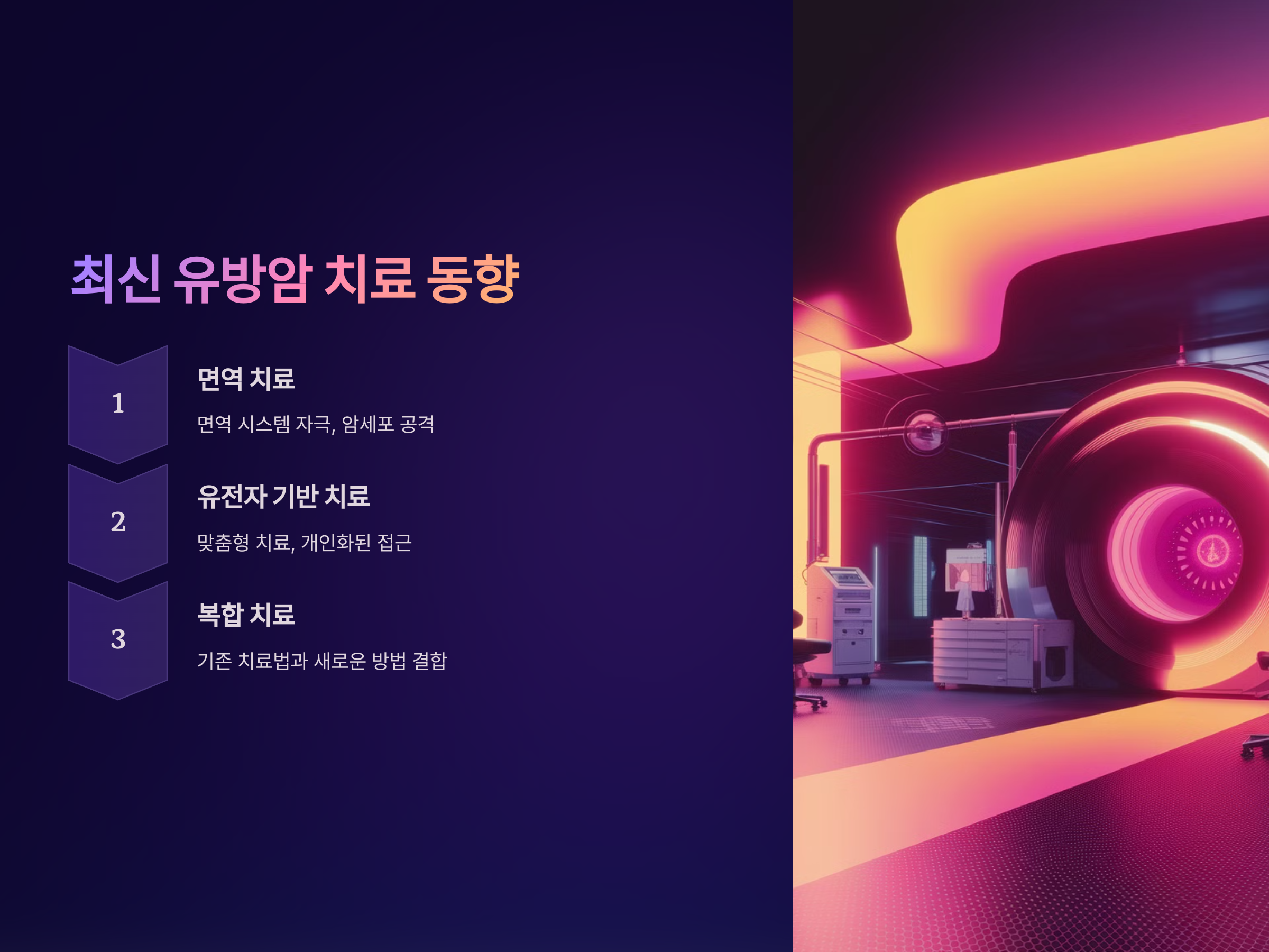 유방암 치료는 날로 발전하고 있으며, 최신 치료법들이 환자들에게 더 많은 선택지를 제공합니다. 최근에는 면역 치료와 같은 새로운 치료법도 연구되고 있으며, 방사선 치료와 항호르몬 요법을 보완할 수 있는 방법들이 제시되고 있습니다.