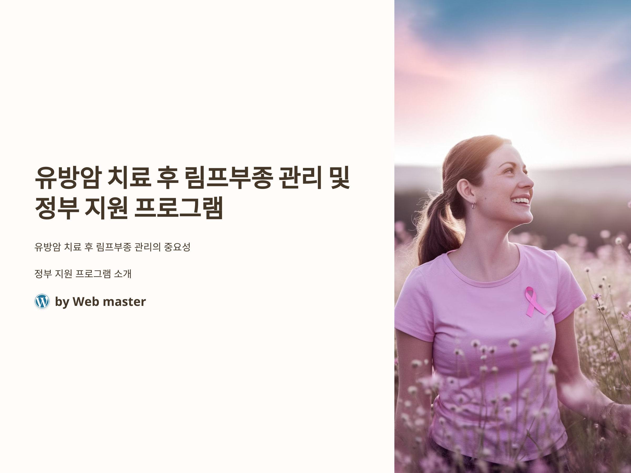 림프부종은 유방암 치료 후 흔히 겪을 수 있는 후유증이지만, 적절한 관리와 정부의 다양한 지원을 통해 충분히 개선할 수 있습니다. 이를 잘 관리하는 것이 중요하며, 증상이 나타나면 빠르게 전문가와 상담하는 것이 필요합니다. 유방암 치료 후 림프부종을 관리하는 다양한 방법과 정부 지원을 적극적으로 활용하여, 더 나은 삶을 영위해보세요.