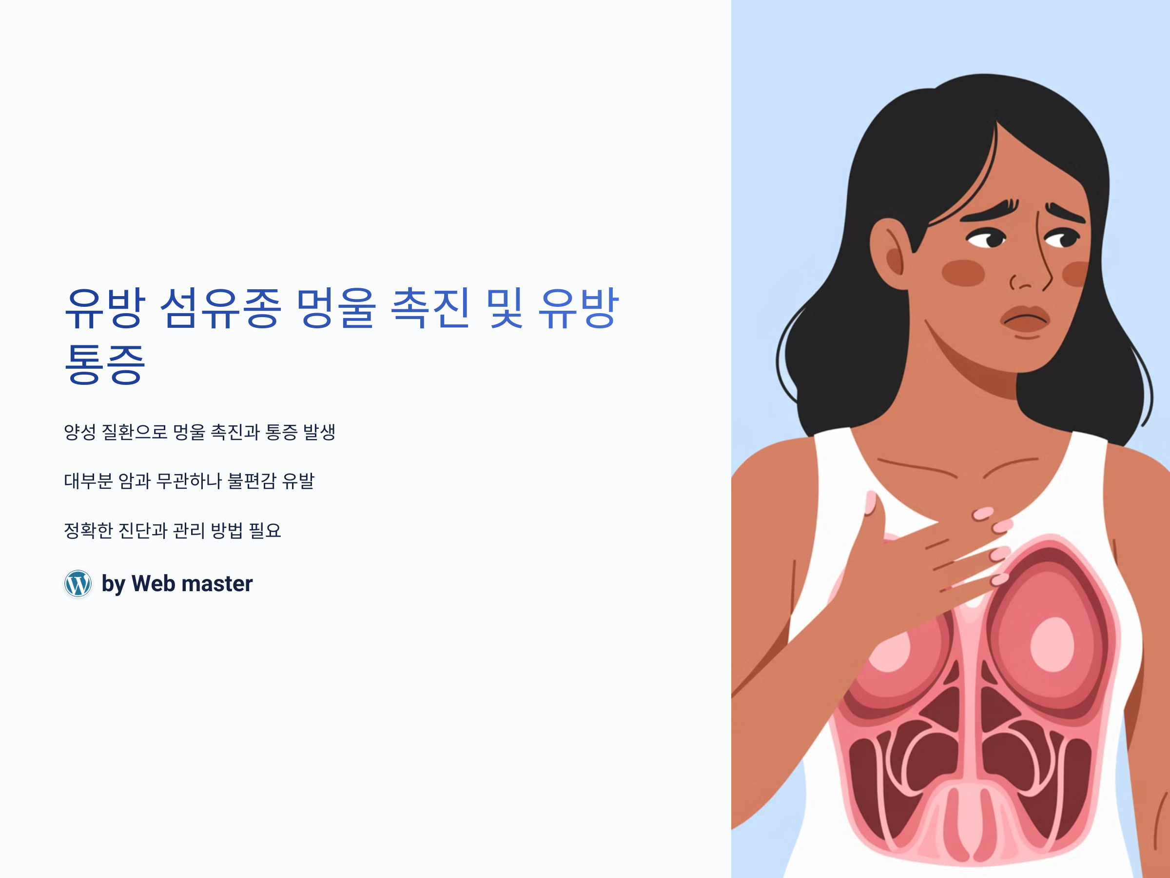 유방 섬유종은 많은 여성들에게 발생할 수 있는 양성 질환으로, 유방에 멍울이 느껴지는 증상으로 흔히 나타납니다. 이 멍울은 대부분 양성이고, 암과는 관련이 없지만 그로 인한 통증이나 불편감은 상당히 고통스러울 수 있습니다. 유방 섬유종에 대해 잘 알지 못한 채 증상을 경험하는 여성들이 많기 때문에, 이 글에서는 유방 섬유종의 멍울 촉진 및 통증에 대해 자세히 알아보고, 이를 어떻게 관리할 수 있는지에 대한 방법을 제시합니다.