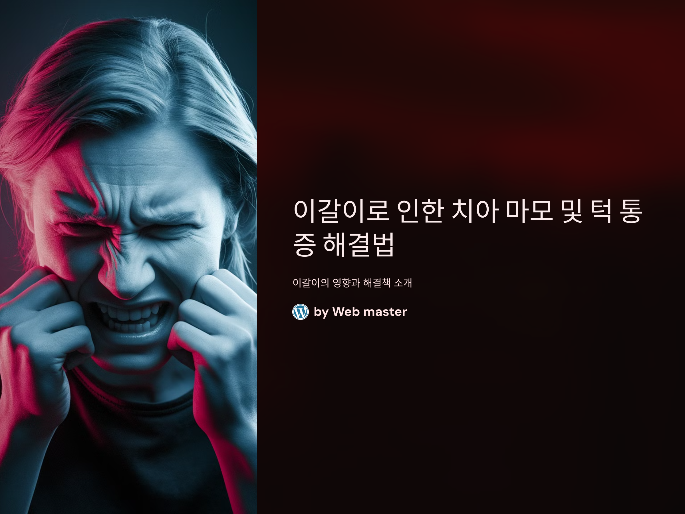 이갈이는 치아 마모와 턱 통증을 유발할 수 있으며, 이를 방치할 경우 더 큰 문제를 일으킬 수 있습니다. 이갈이를 예방하고 치료하기 위해서는 스트레스를 관리하고, 적절한 수면 환경을 조성하며, 치과에서 제공하는 마우스피스를 착용하는 것이 중요합니다. 또한, 턱 통증이 심할 경우 물리치료나 턱 근육 이완을 위한 마사지를 받는 것이 도움이 될 수 있습니다. 이갈이가 지속되면 전문가와 상담하여 조기에 문제를 해결하는 것이 최선의 방법입니다.
