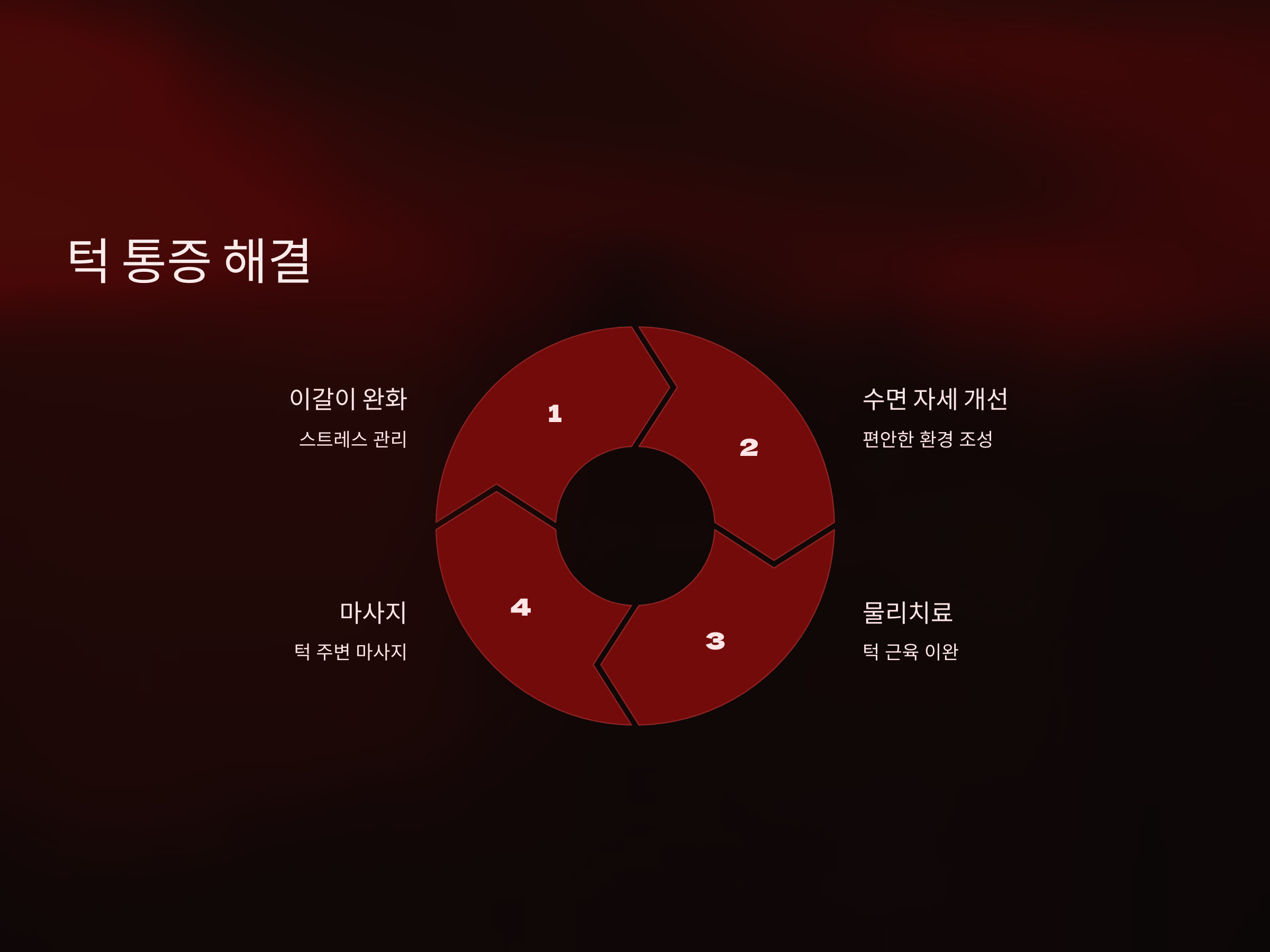 또한, 턱 통증이 심한 경우에는 물리치료나 턱 근육 이완을 위한 마사지도 효과적일 수 있습니다. 이러한 치료 방법은 턱 근육을 풀어주고, 장기적으로 턱 통증을 완화하는 데 도움이 됩니다.