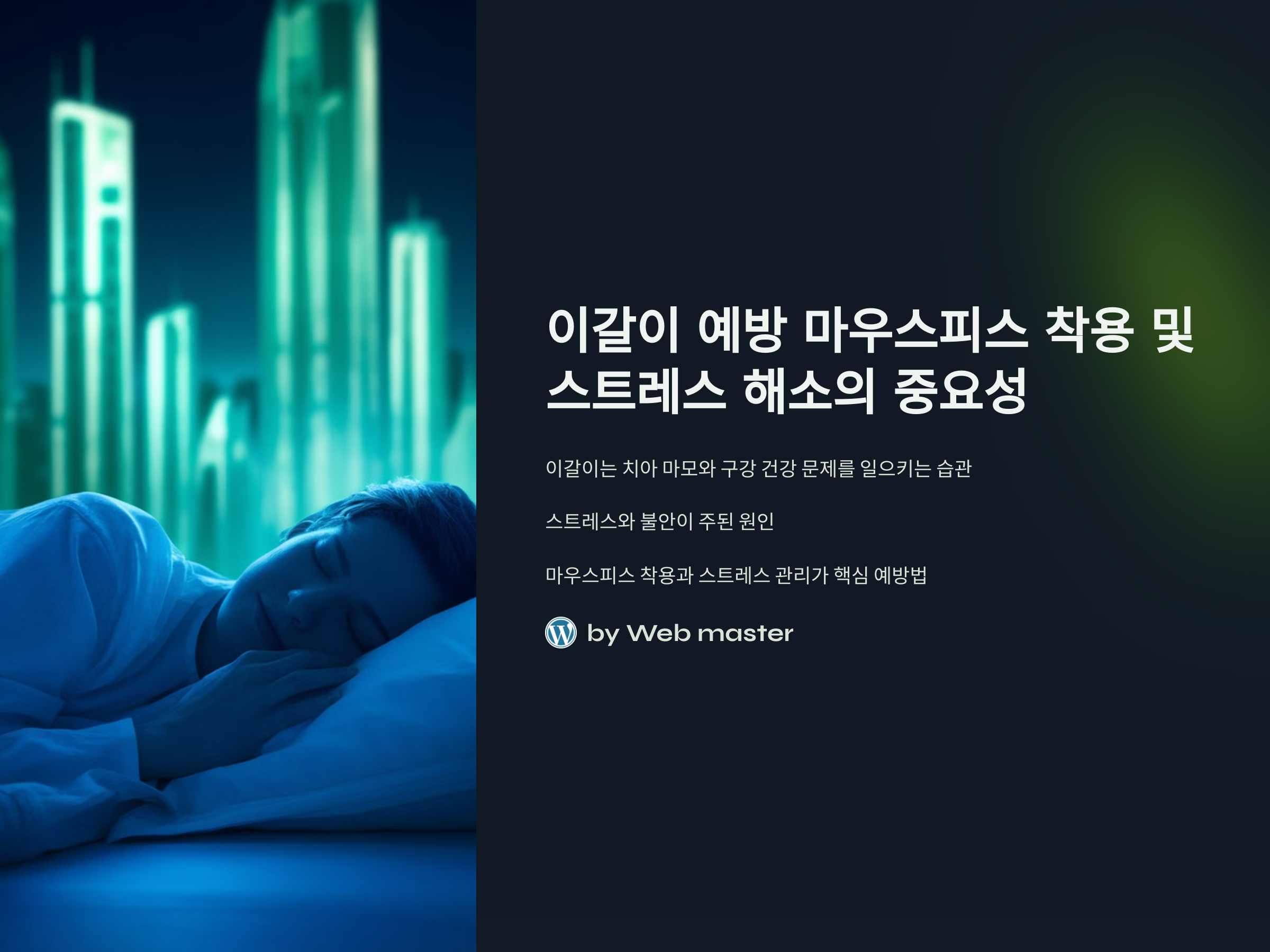 마우스피스를 착용하고 스트레스를 관리하는 방법을 꾸준히 실천한다면, 이갈이 문제를 완전히 예방하고, 건강한 삶을 유지할 수 있을 것입니다. 여러분도 오늘부터 이갈이 예방을 위한 마우스피스를 착용하고, 스트레스 해소 방법을 실천해보세요!