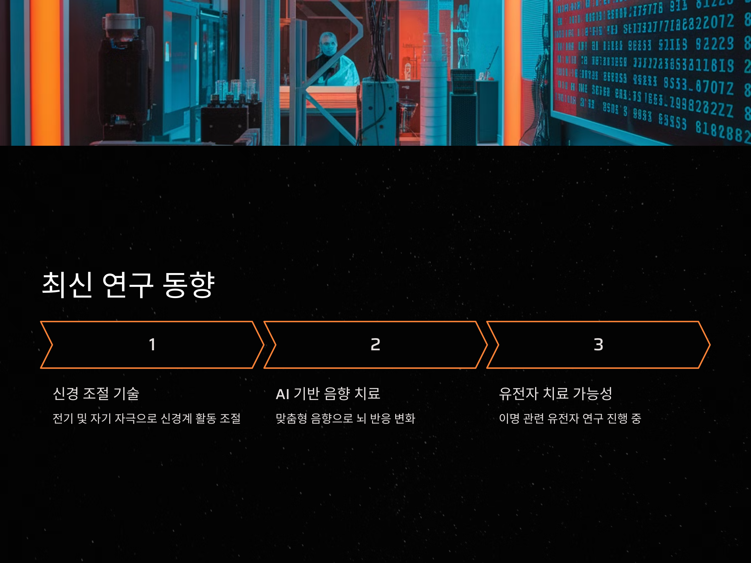 - AI 기반 음향 치료: 인공지능이 개인별 맞춤형 음향을 제공하여 뇌의 반응을 변화시키는 기술이 개발 중입니다.