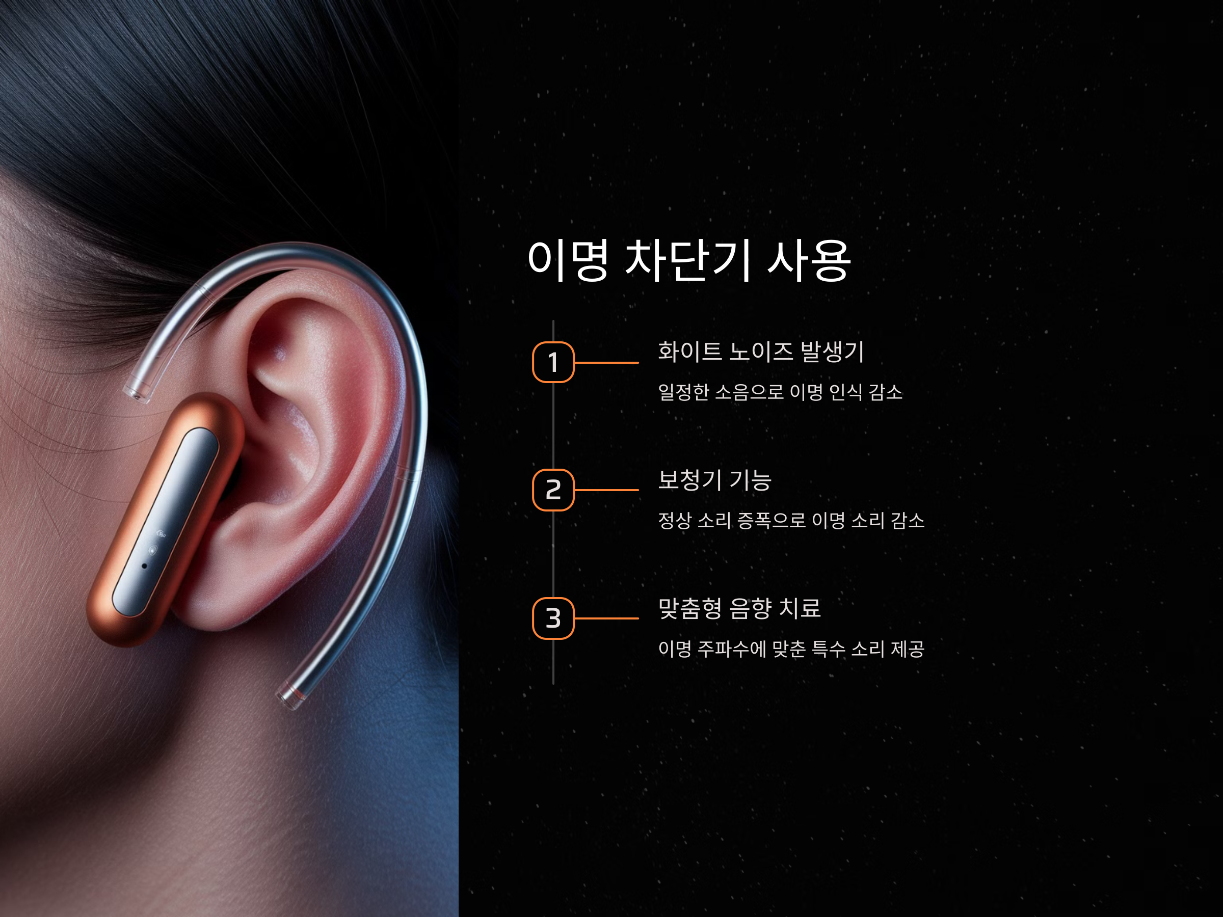 이명 차단기는 외부 소음을 조절하여 이명 소리를 덜 인식하도록 돕는 기기입니다. 다음과 같은 방식으로 작용합니다.