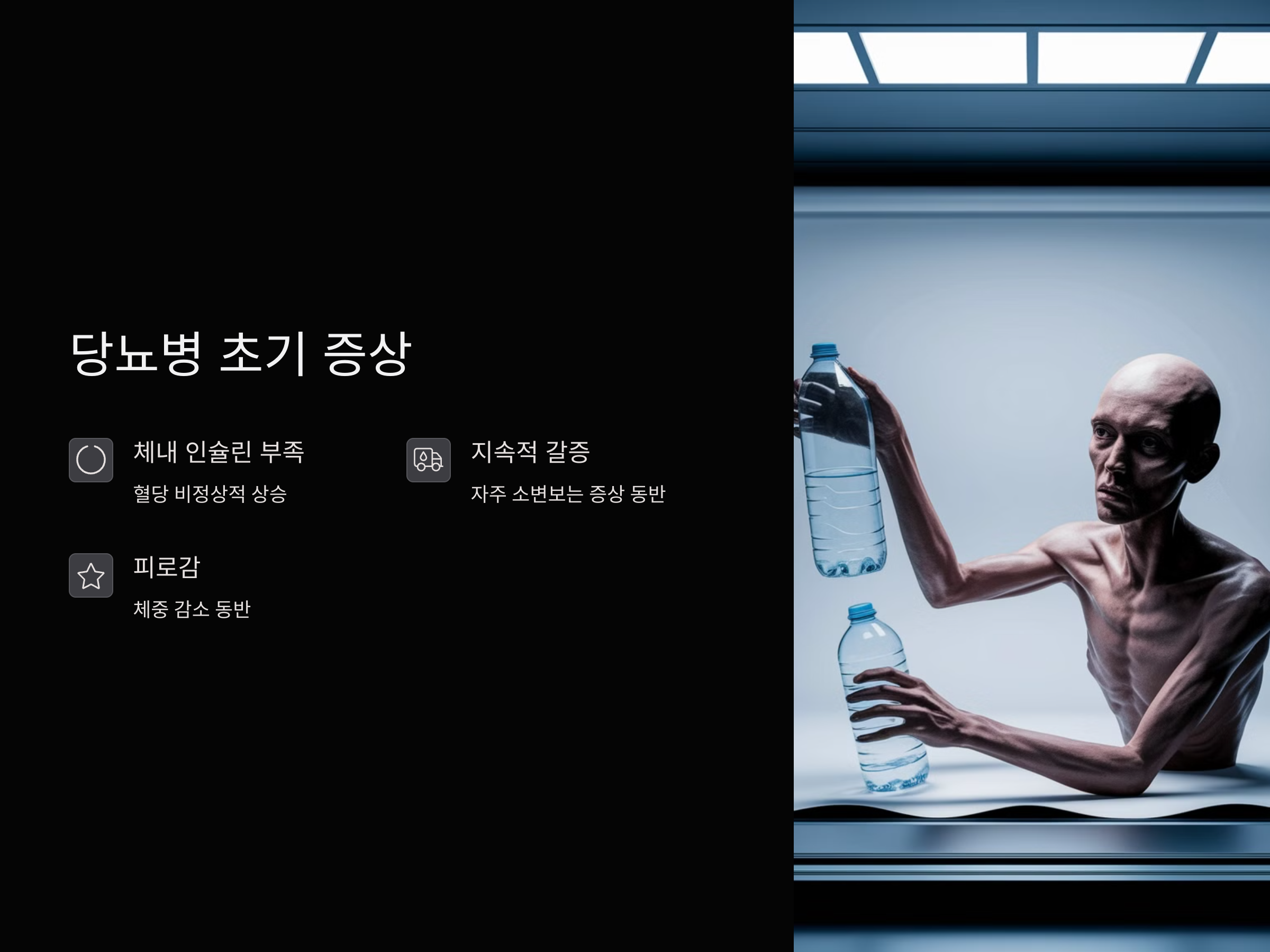 이러한 증상들이 함께 나타난다면, 당뇨병을 의심할 필요가 있습니다.
