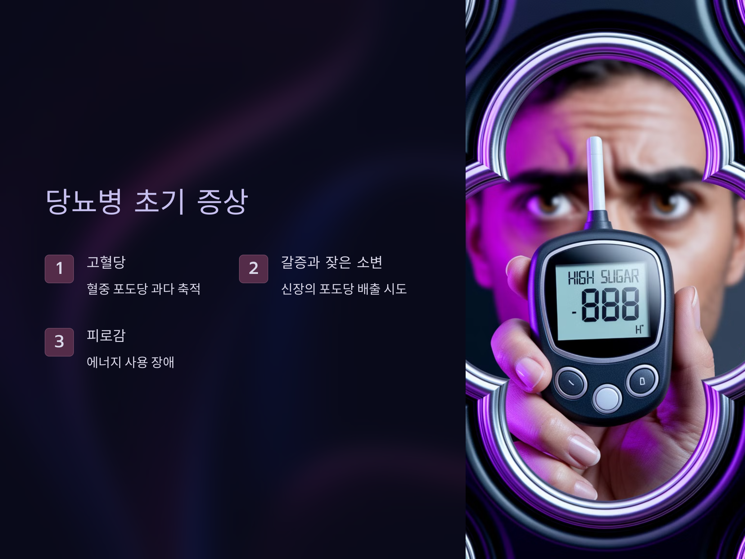 당뇨병 초기 증상은 방치하면 심각한 합병증으로 이어질 수 있으므로 증상이 의심된다면 조기에 병원을 방문하여 혈당 검사를 받는 것이 중요합니다.