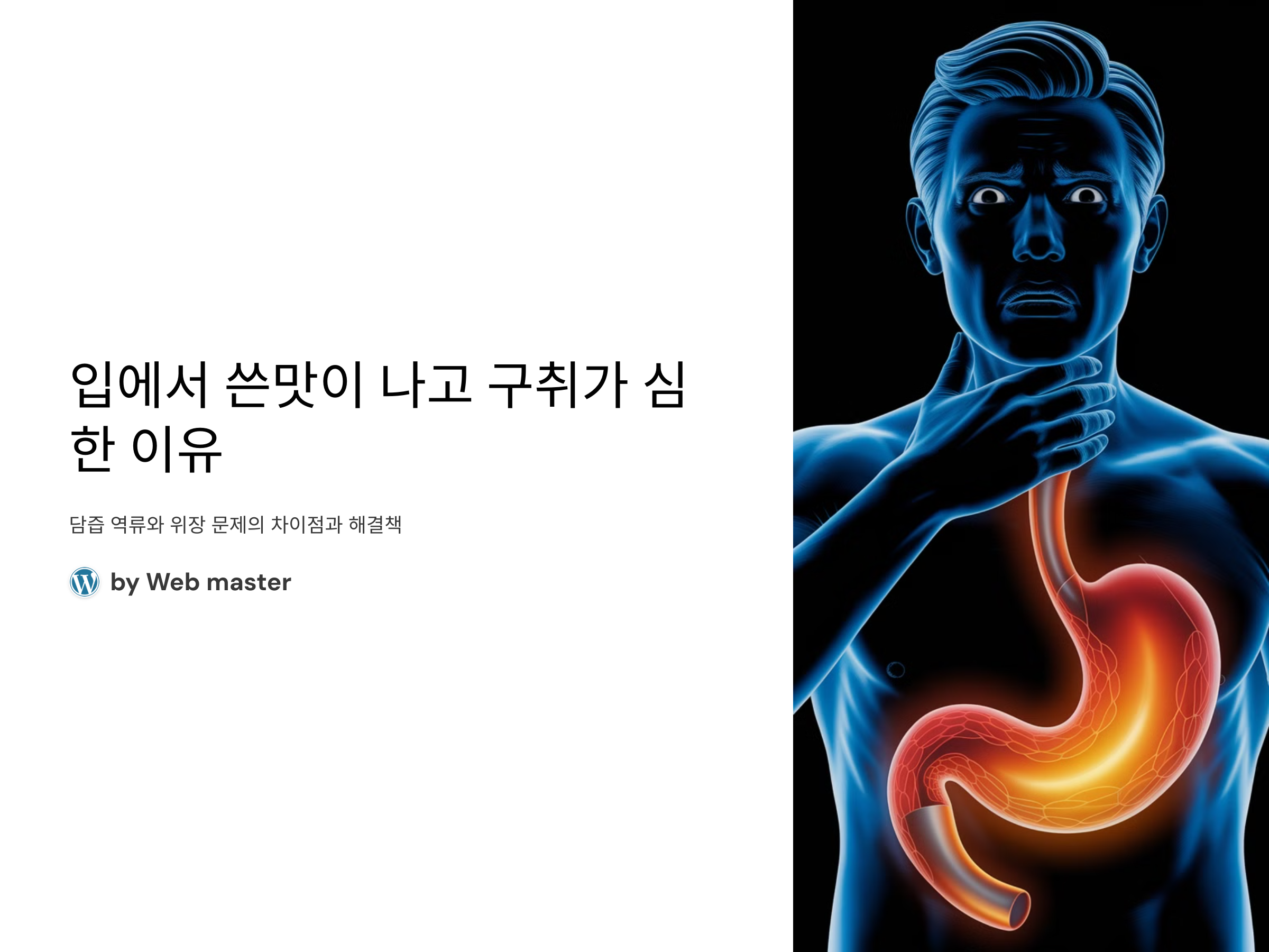 입에서 쓴맛이 나고 구취가 심한 증상은 많은 사람들이 겪는 불편한 증상 중 하나입니다. 이러한 증상은 일시적인 경우도 있지만, 지속적으로 발생할 경우 더 심각한 건강 문제를 나타낼 수 있습니다. 대표적인 원인으로는 담즙 역류와 위장 문제가 있습니다. 두 가지는 증상이 비슷해 혼동할 수 있지만, 각각의 원인과 해결 방법은 다릅니다. 이 글에서는 두 가지 원인에 대해 구체적으로 알아보겠습니다.