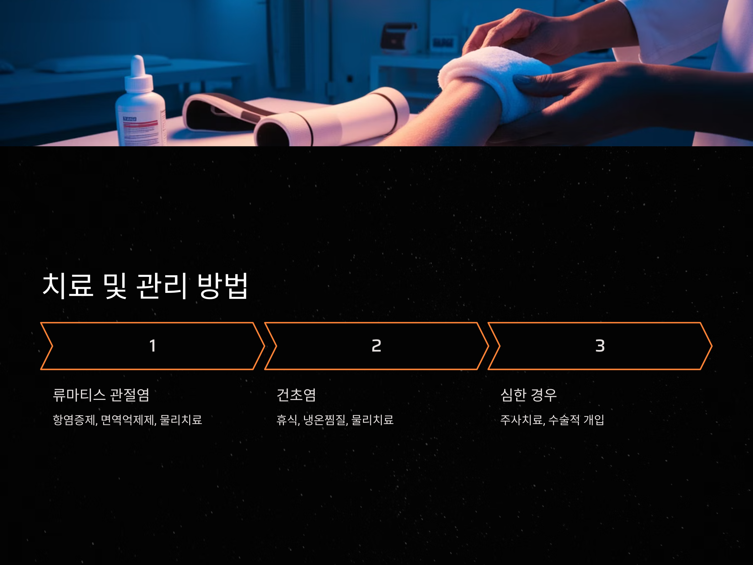 - 건초염: 의사는 손목이나 팔꿈치의 운동 범위, 통증 등을 검사하여 진단합니다. 엑스레이나 MRI 검사를 통해 힘줄의 염증을 확인할 수 있습니다.