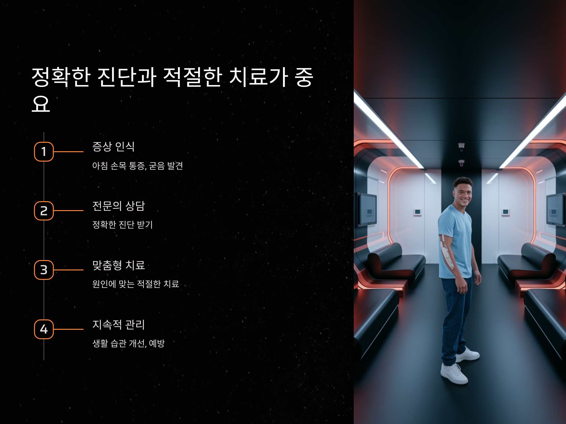 손목의 통증과 굳음 증상은 류마티스 관절염과 건초염 모두에서 발생할 수 있습니다. 하지만, 증상의 차이점을 잘 구분하고, 적절한 진단과 치료를 받는 것이 중요합니다. 아침에 손목이 굳고 아픈 증상이 계속된다면, 전문적인 진단을 통해 원인을 정확히 파악하고 치료 방법을 결정하는 것이 필요합니다. 이를 통해 더 이상 통증에 시달리지 않고, 건강한 손목을 유지할 수 있습니다.