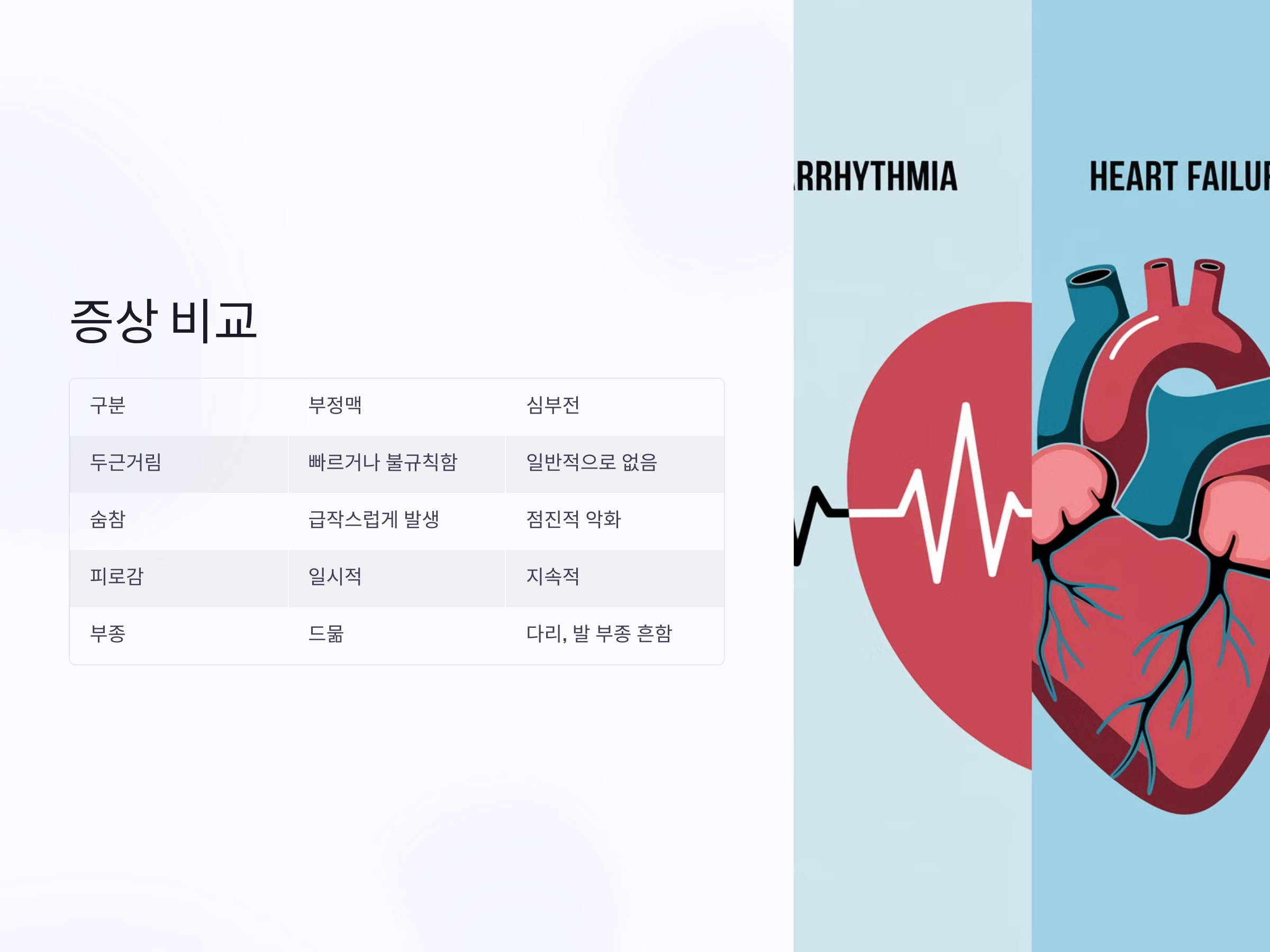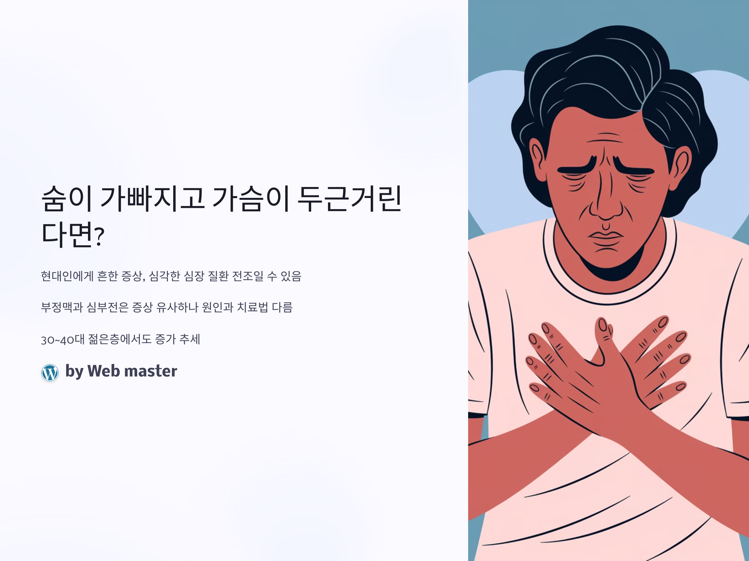 숨이 가빠지고 가슴이 두근거리는 증상은 현대인에게 흔하게 나타나는 문제이지만, 단순한 스트레스나 피로가 아닌 심각한 심장 질환의 전조일 수 있습니다. 특히 부정맥과 심부전은 증상이 매우 유사하지만, 원인과 치료법이 전혀 다르기 때문에 정확한 판단이 중요합니다. 최근에는 30~40대의 젊은 연령층에서도 이러한 증상이 증가하고 있으며, 스마트워치 등의 헬스 기기를 통해 조기 진단이 이루어지는 경우도 많아지고 있습니다.
