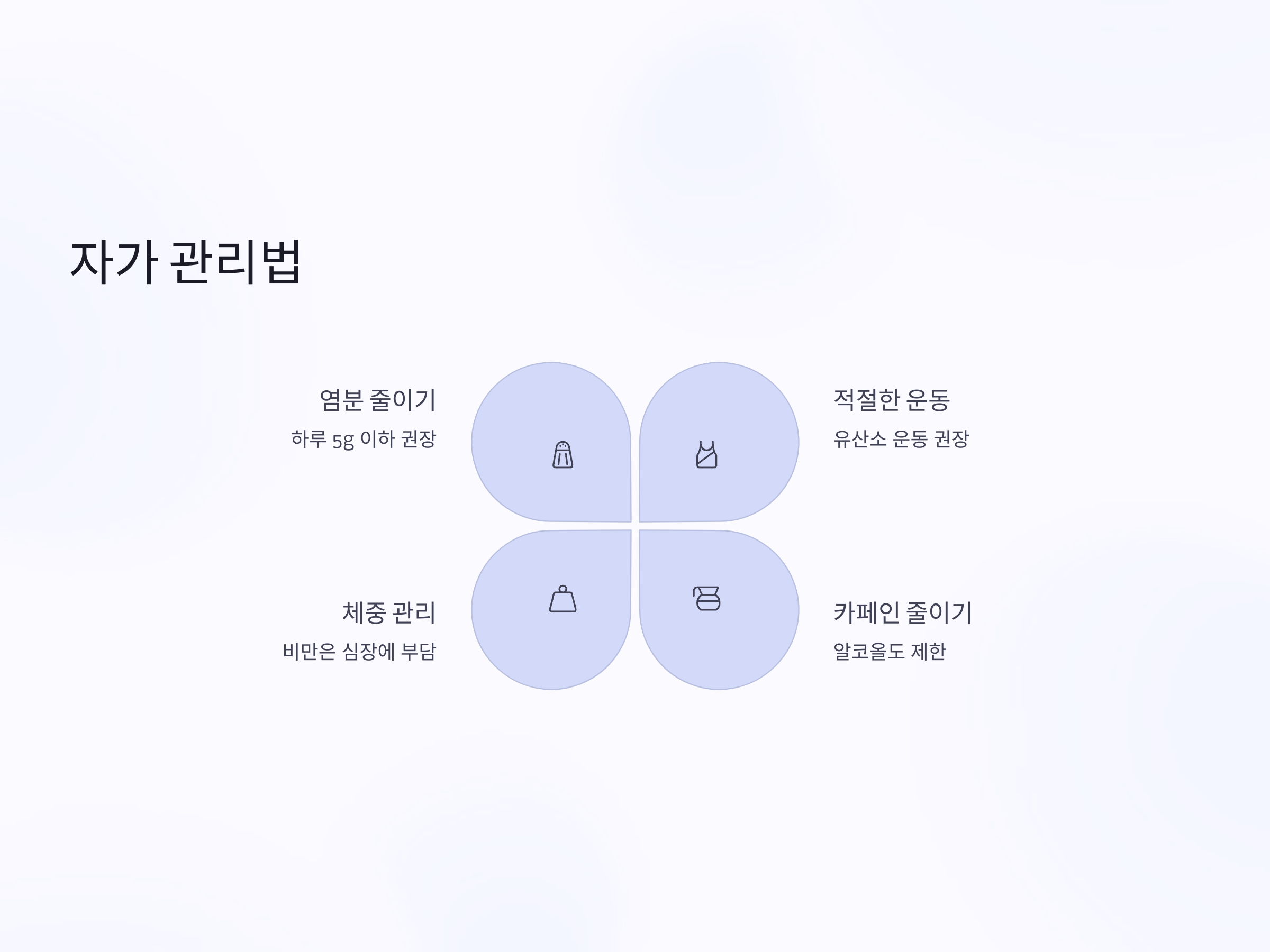 - 고혈압, 심근경색 등 기존 심장 질환 병력
