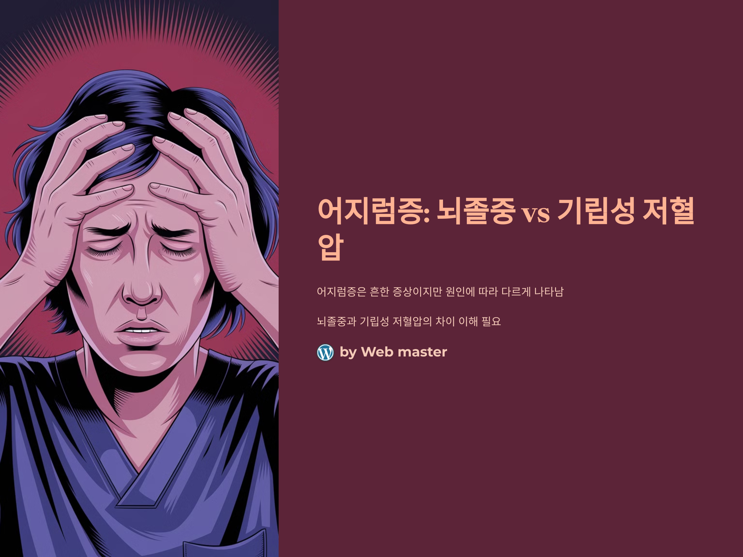 어지럼증은 많은 사람들이 경험하는 흔한 증상입니다. 하지만 어지러움의 원인은 다양하며, 그 원인에 따라 증상이 다르게 나타날 수 있습니다. 특히 뇌졸중과 기립성 저혈압은 어지럼증을 유발할 수 있는 주요 원인 중 두 가지로, 이 둘의 차이를 정확히 이해하는 것이 중요합니다. 이 글에서는 뇌졸중 초기 증상과 기립성 저혈압에 대해 알아보겠습니다.