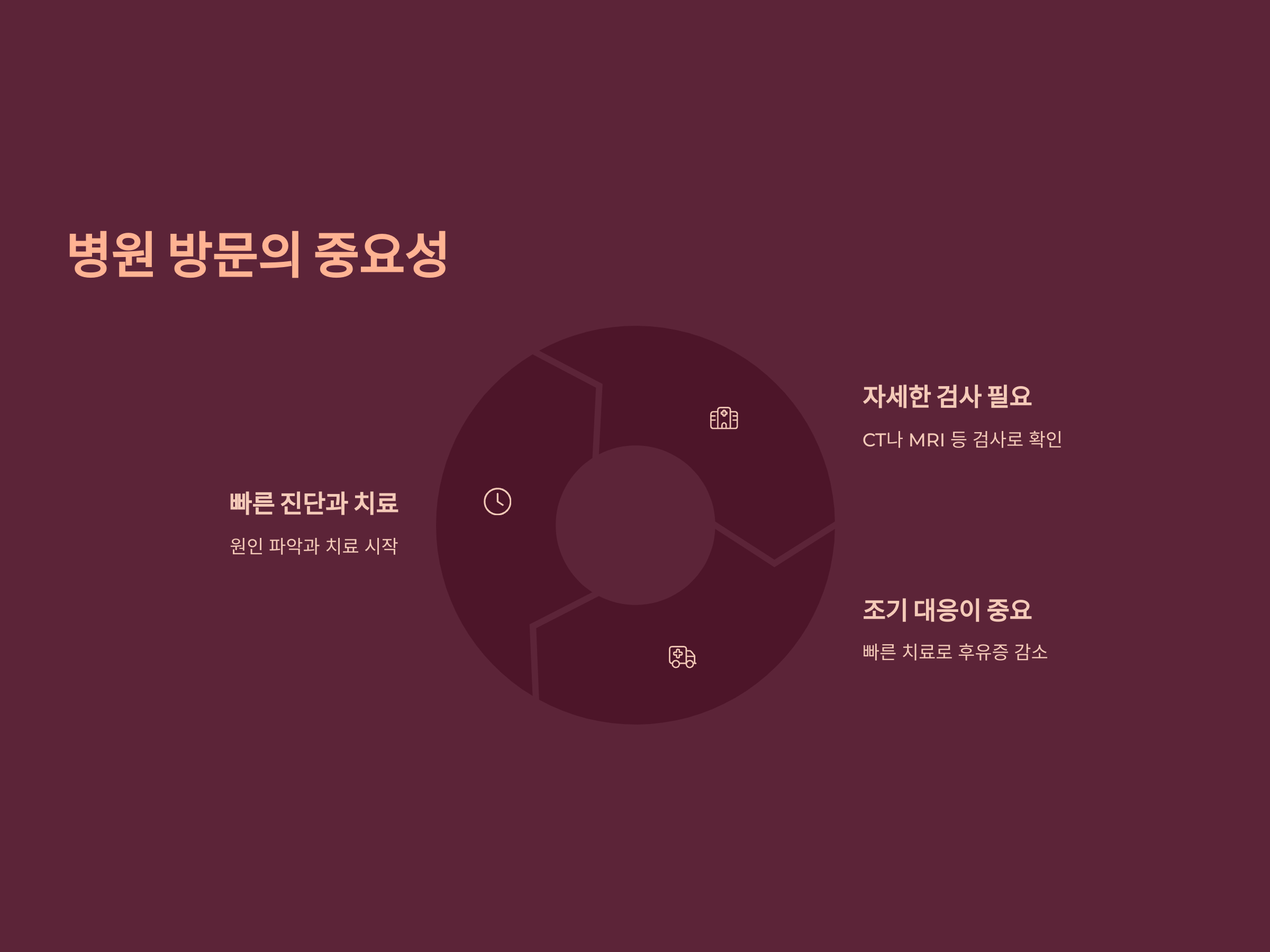 - 자세한 검사 필요: CT나 MRI 등의 검사를 통해 뇌졸중이나 다른 질환을 확인할 수 있습니다.