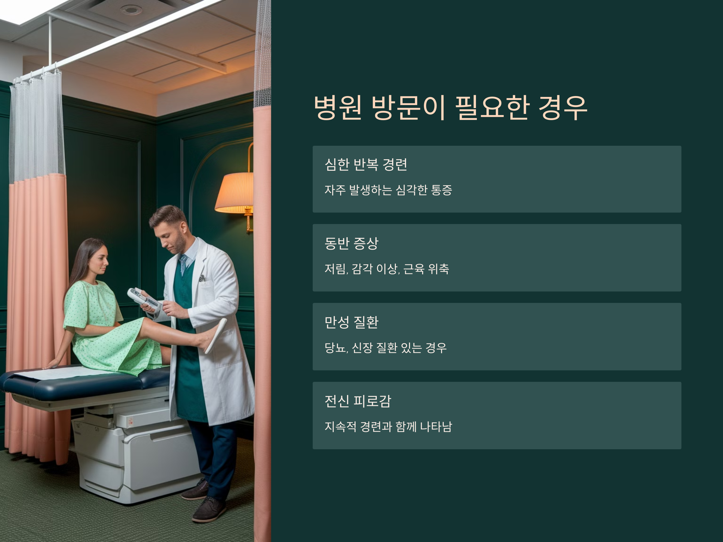 대부분의 경우 생활습관 조정과 영양 보충으로 증상을 완화할 수 있지만, 아래와 같은 증상이 있다면 병원 방문이 필요합니다.