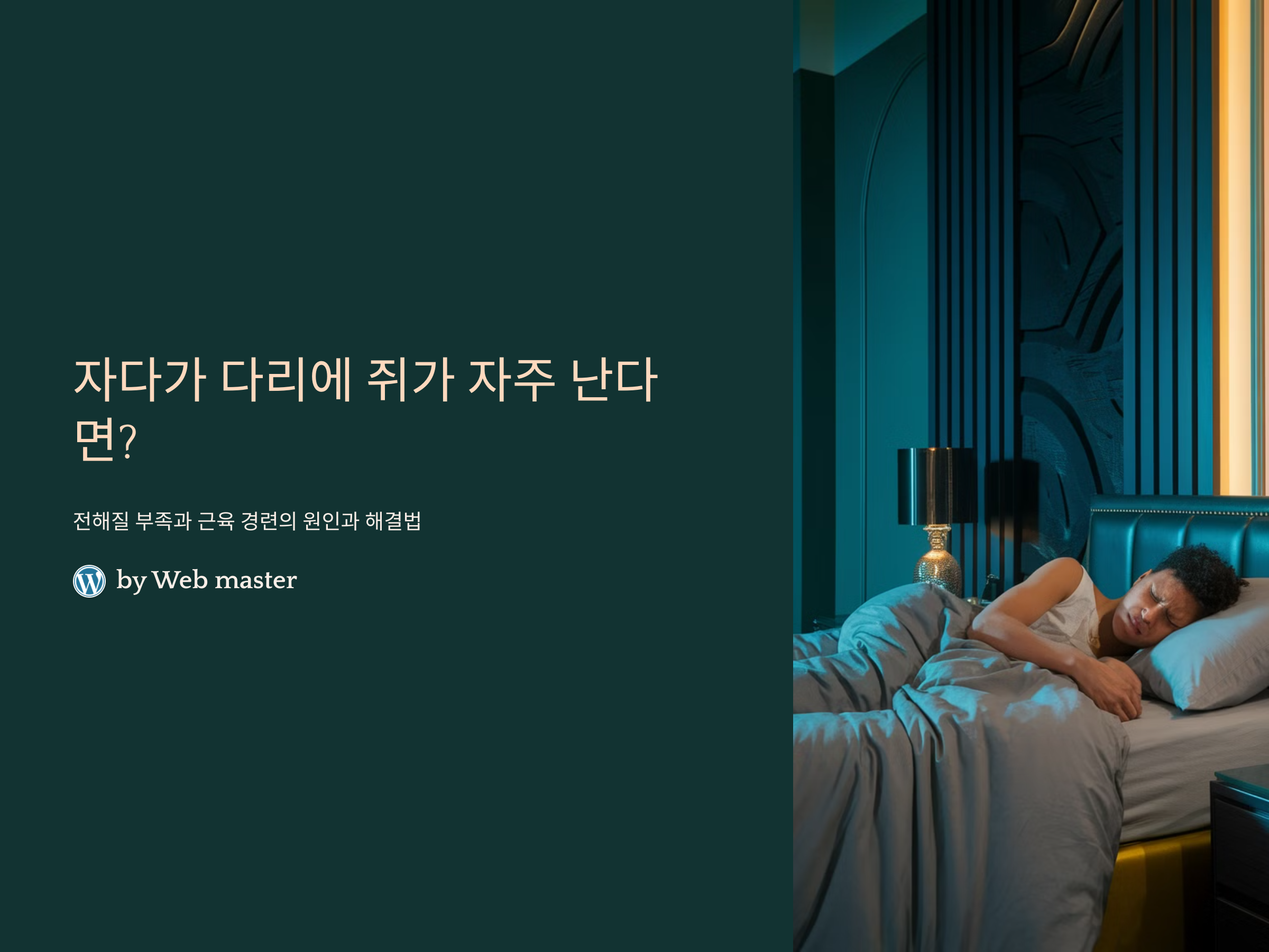 자다가 다리에 쥐가 나는 원인은 단순한 근육 피로일 수도 있지만, 전해질 부족으로 인해 발생할 수도 있기 때문에 원인을 정확히 파악하는 것이 중요합니다. 생활습관 개선, 수분 및 전해질 균형 유지, 스트레칭을 꾸준히 실천하면 증상을 효과적으로 예방할 수 있습니다.