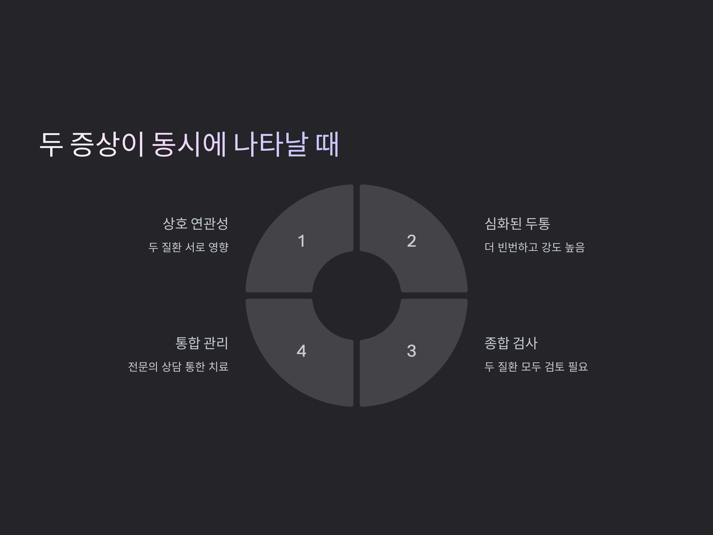 특히 고혈압 환자가 수면무호흡증까지 동반하면 두통 증상이 더욱 심화될 수 있어, 복합적 원인을 고려한 진단이 필수적입니다. 건강검진이나 수면다원검사 등을 통해 원인을 정확히 파악하고, 증상 완화를 위한 맞춤형 접근이 요구됩니다.
