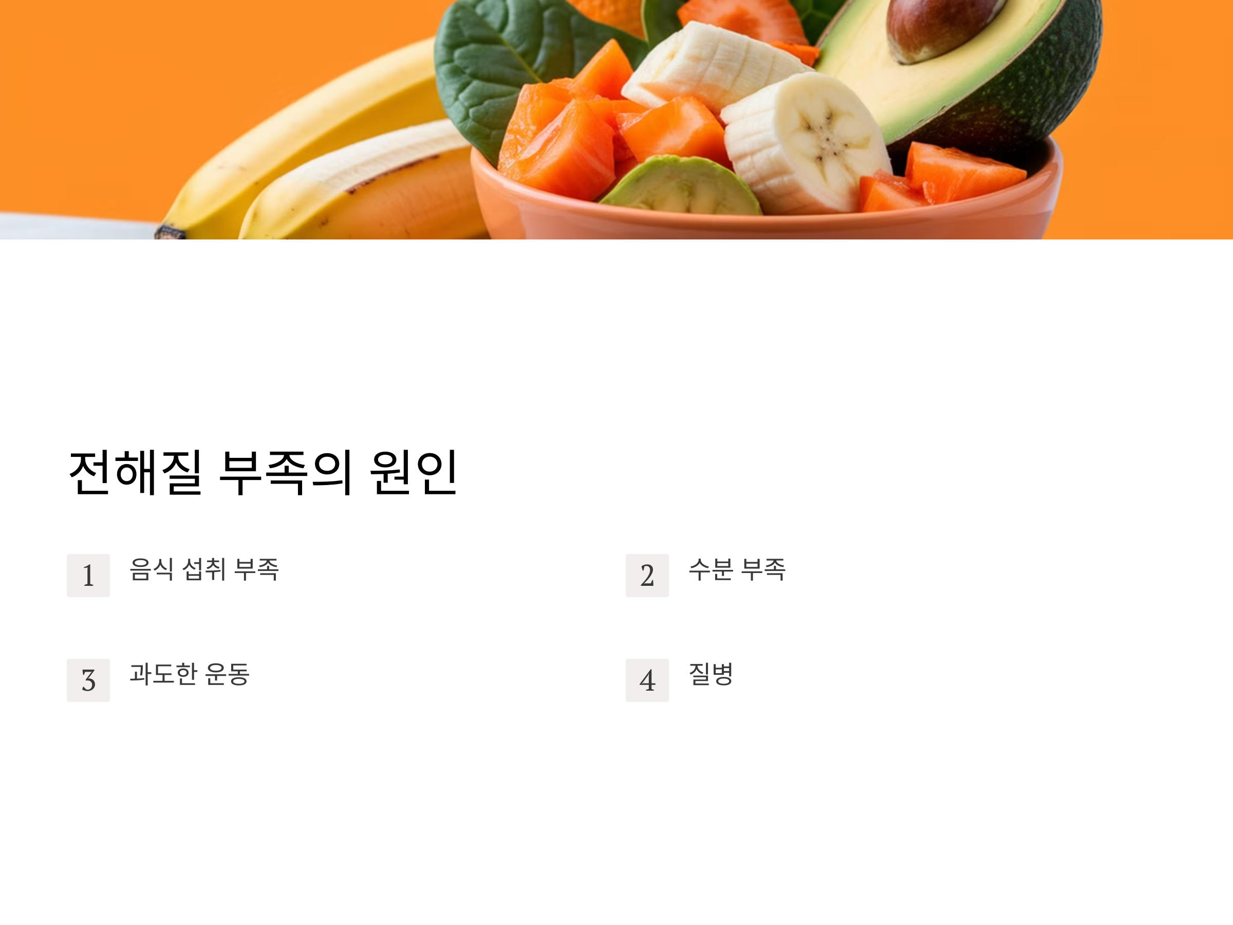 - 질병: 당뇨병, 신장질환 등 일부 질병도 전해질 불균형을 초래할 수 있습니다.