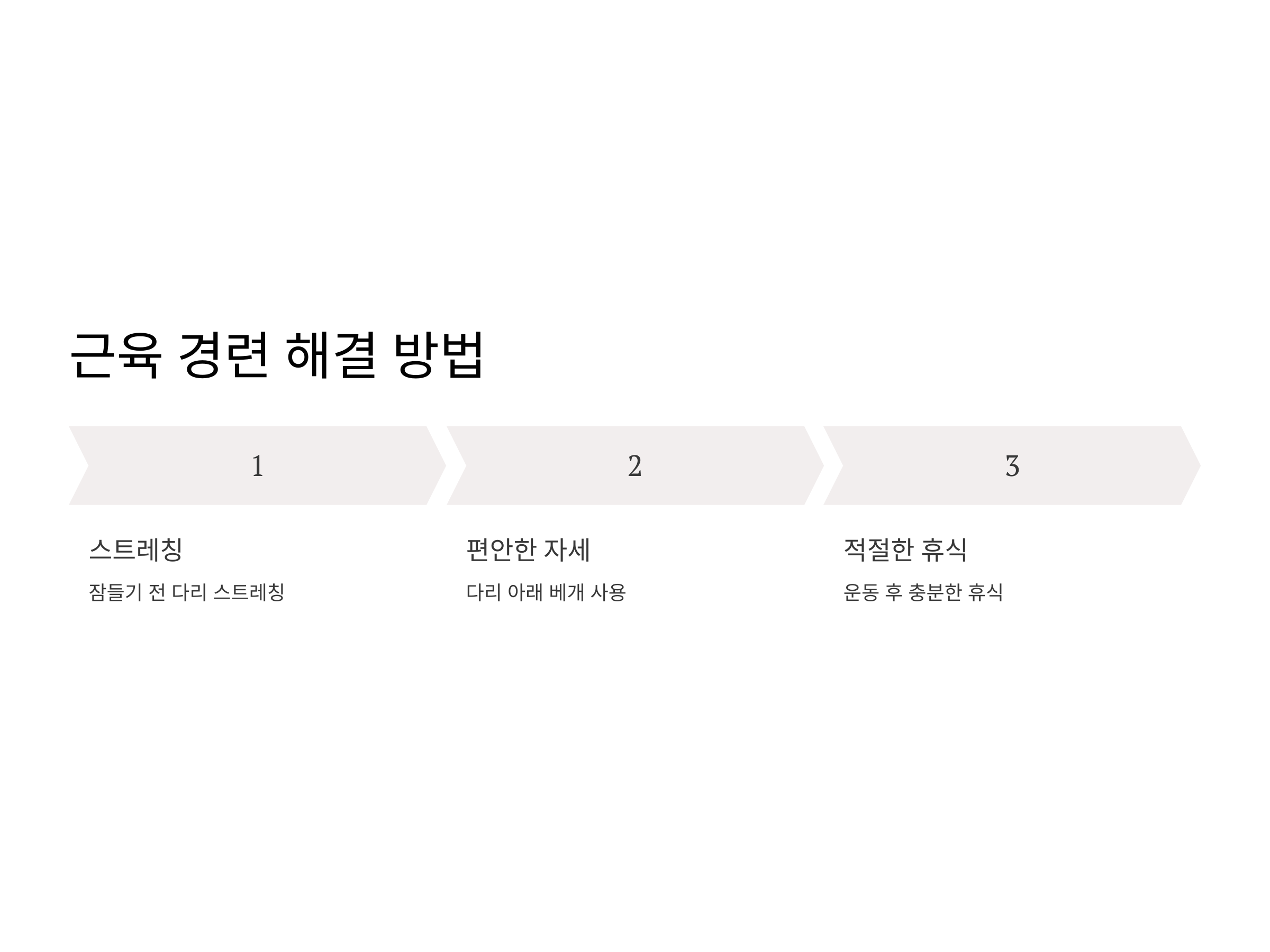 - 편안한 자세: 자는 동안 다리를 편안하게 놓고, 다리 아래에 베개를 두어 경련을 예방할 수 있습니다.
