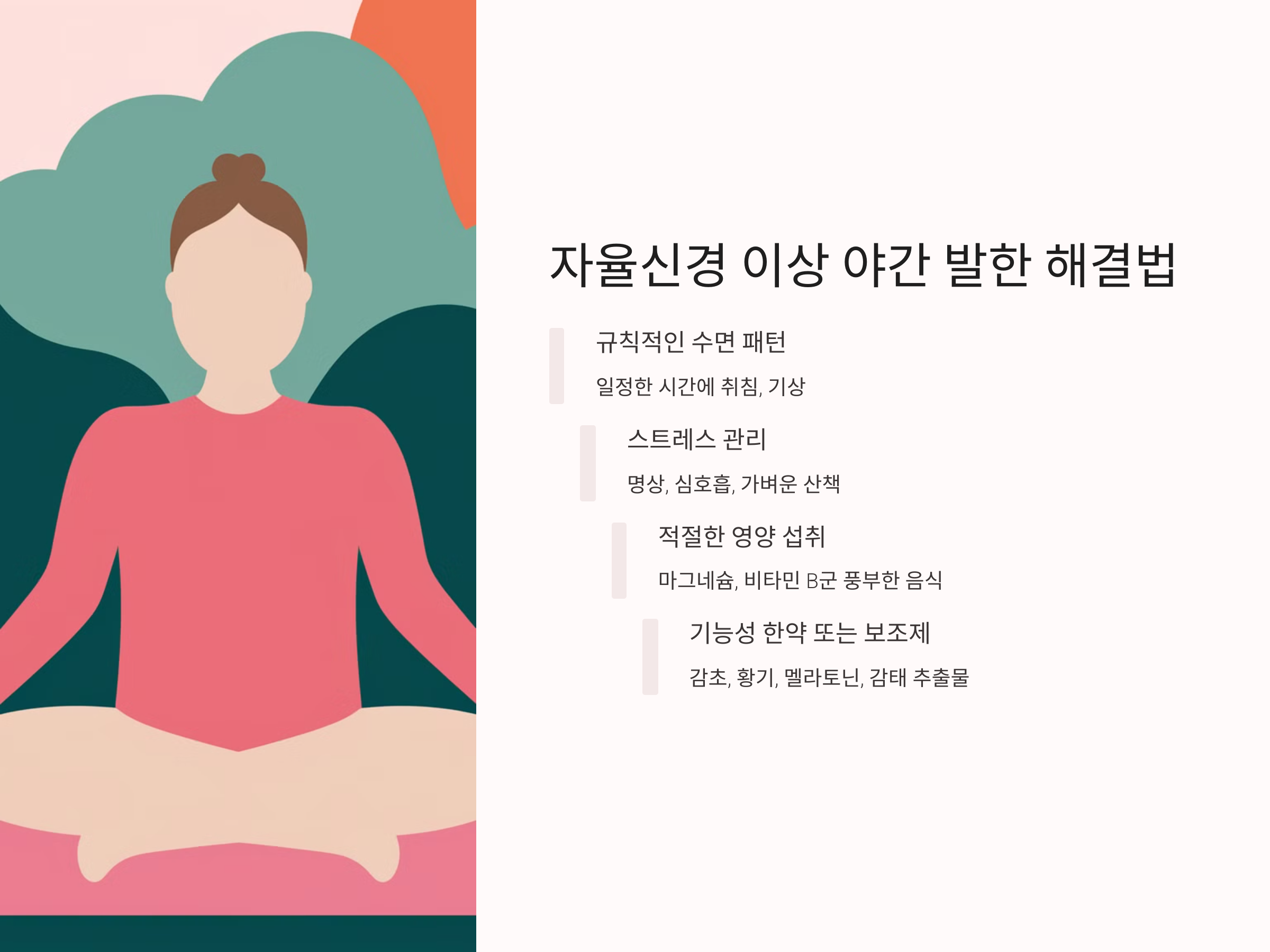자율신경 조절을 돕는 한약(예: 감초, 황기)이나 건강 보조제(예: 멜라토닌, 감태 추출물)를 활용할 수도 있습니다.