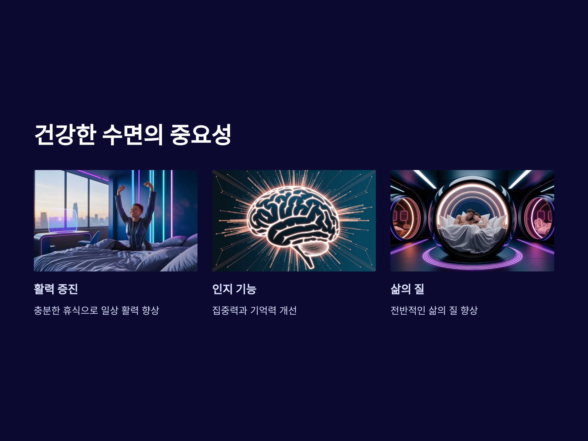 - 규칙적인 수면 패턴 유지: 매일 같은 시간에 자고 일어나는 습관을 들여 수면의 질을 향상시킵니다.