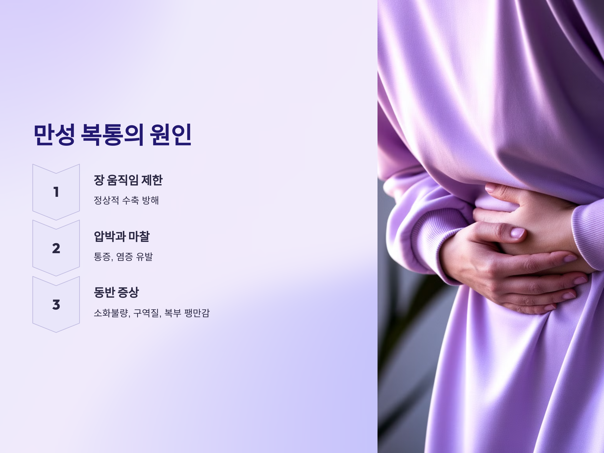 장유착증이 만성 복통을 유발하는 원리는 매우 복잡합니다. 장기가 서로 엉켜 있는 상태에서는 장의 정상적인 움직임이 제한됩니다. 장은 음식물과 가스를 이동시키기 위해 규칙적인 수축을 하는데, 유착된 부위에서는 장이 정상적으로 움직이지 못하고 통증을 유발합니다. 특히 장의 한 부위가 다른 부위에 과도하게 압박을 가하면, 통증이 더욱 심해집니다.