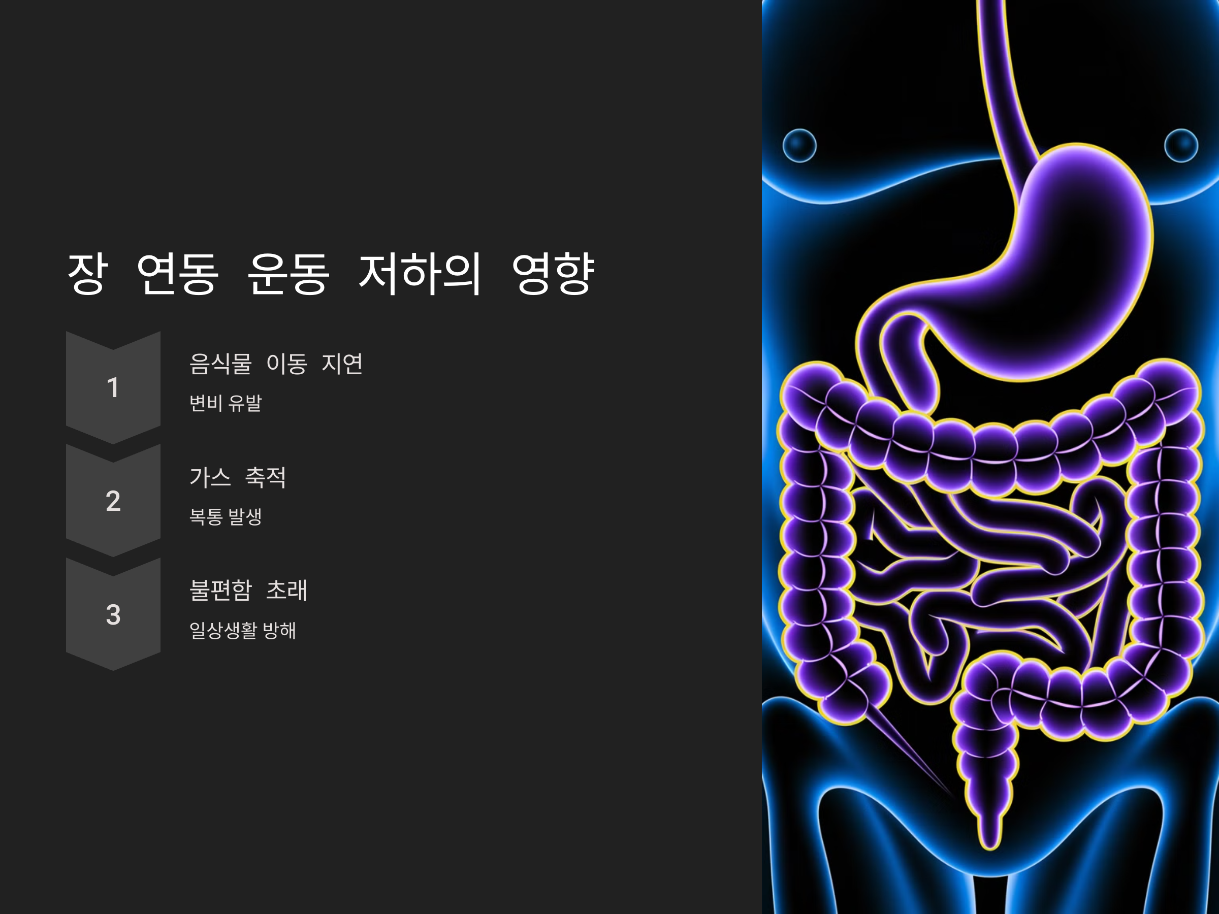 장 건강은 우리가 매일 겪는 소화 기능과 직결되는 중요한 부분입니다. 그중에서도 장의 연동 운동 저하는 변비와 복통을 유발할 수 있습니다. 장의 연동 운동은 장이 음식을 소화하고 배출하는 데 중요한 역할을 하는데, 이 운동이 저하되면 음식물의 이동이 원활하지 않아 변비와 복통 같은 불편한 증상들이 나타날 수 있습니다. 이러한 증상들은 생활의 질을 떨어뜨릴 수 있으므로 적절한 관리가 필요합니다.