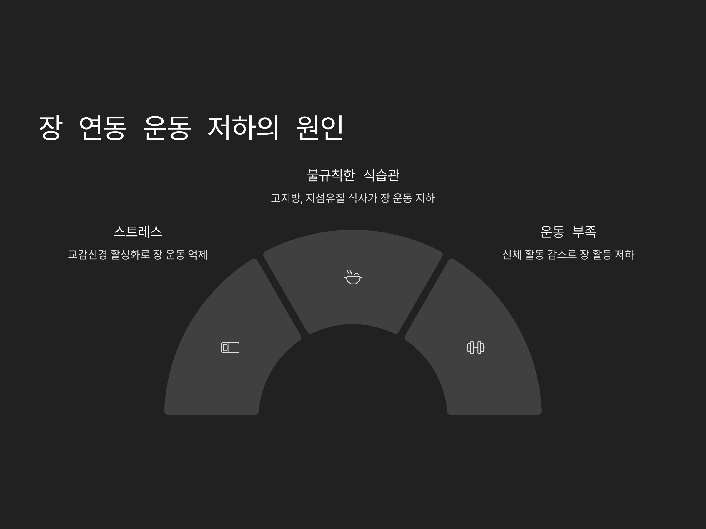 첫째, 스트레스는 장의 연동 운동을 저하시킬 수 있는 주요 원인 중 하나입니다. 스트레스가 과도하면 교감신경이 활성화되어 장의 운동을 억제하게 됩니다. 둘째, 불규칙한 식습관도 중요한 역할을 합니다. 고지방, 저섬유질 음식이 많은 식사는 장의 연동 운동을 느리게 만들 수 있습니다. 셋째, 운동 부족 역시 연동 운동 저하를 일으킬 수 있습니다. 운동은 장의 활동을 촉진시키기 때문에 꾸준한 신체 활동이 필요합니다. 이러한 원인들을 해결하기 위해서는 생활 습관을 점검하고 개선하는 것이 중요합니다.