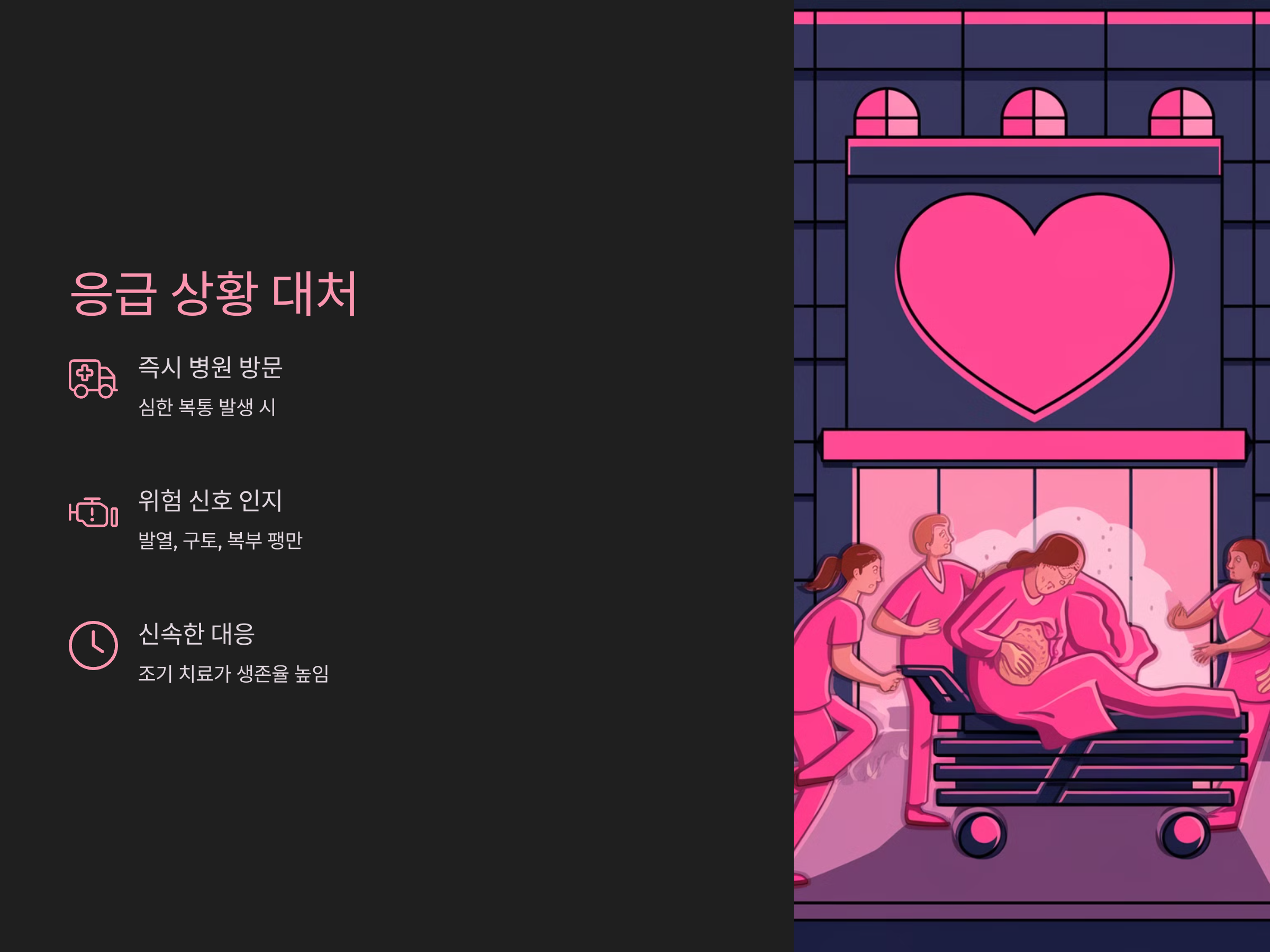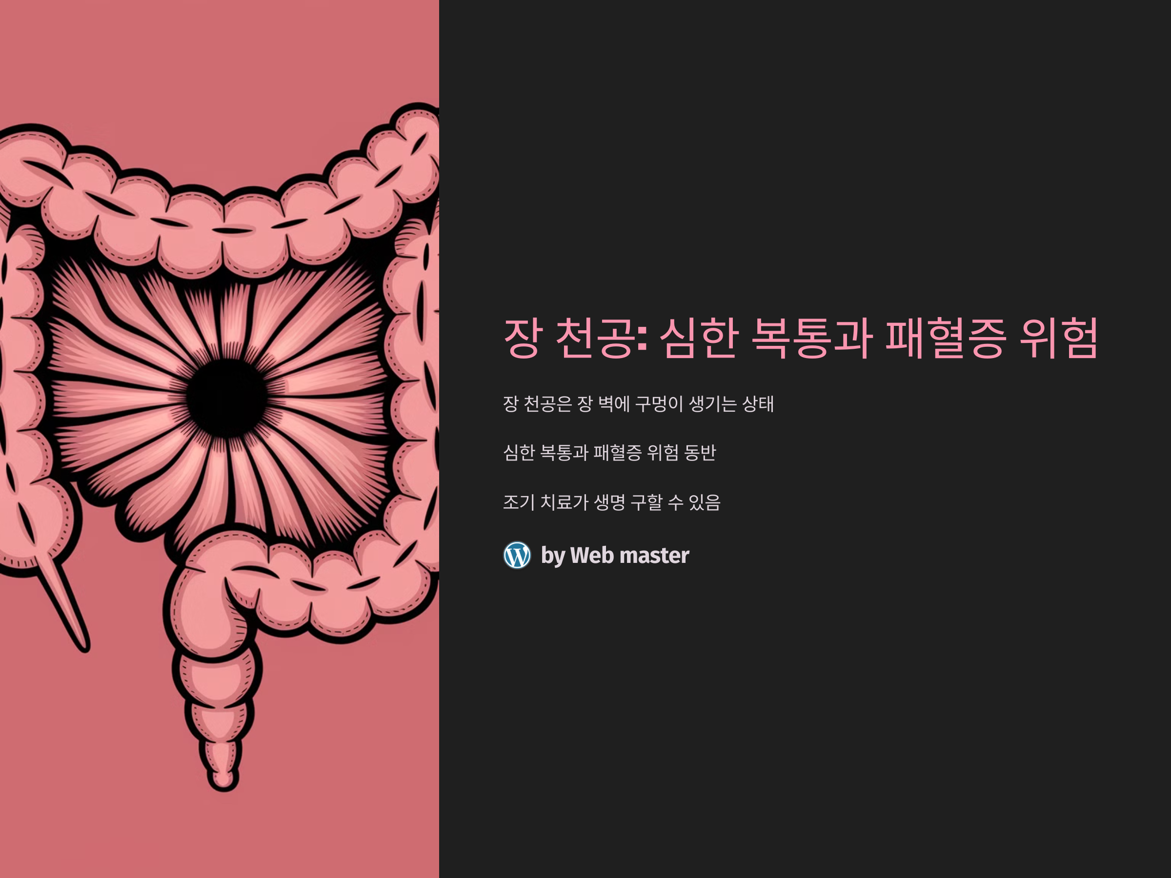 장 천공은 매우 위험한 상태로, 조기 발견과 치료가 생명을 구할 수 있습니다. 심한 복통과 함께 패혈증의 위험이 따르는 장 천공은 빠르게 진행되기 때문에, 의심되는 증상이 나타날 경우 즉시 병원을 방문해야 합니다. 장 천공의 원인과 증상을 이해하고, 예방을 위한 생활 습관 개선을 통해 위험을 최소화할 수 있습니다. 무엇보다도, 빠른 응급 치료와 전문적인 치료를 통해 장 천공의 위험을 줄일 수 있습니다.