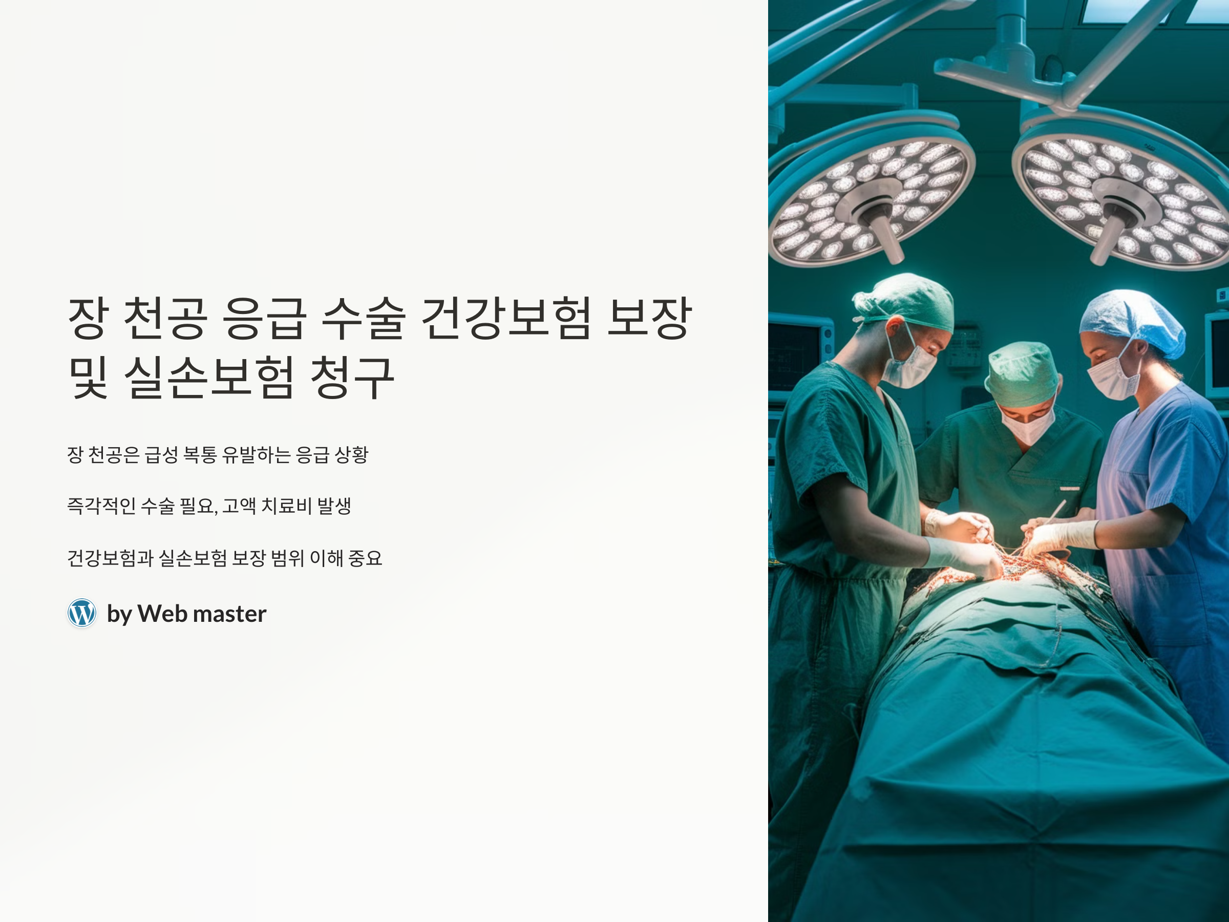 이번 포스팅에서는 장 천공 응급 수술에 대한 건강보험 보장 범위와 입원 치료비 실손보험 청구 절차에 대해 자세히 알아보겠습니다. 이를 통해 예기치 못한 고액의 병원비 부담을 덜 수 있는 방법을 제시하고자 합니다.