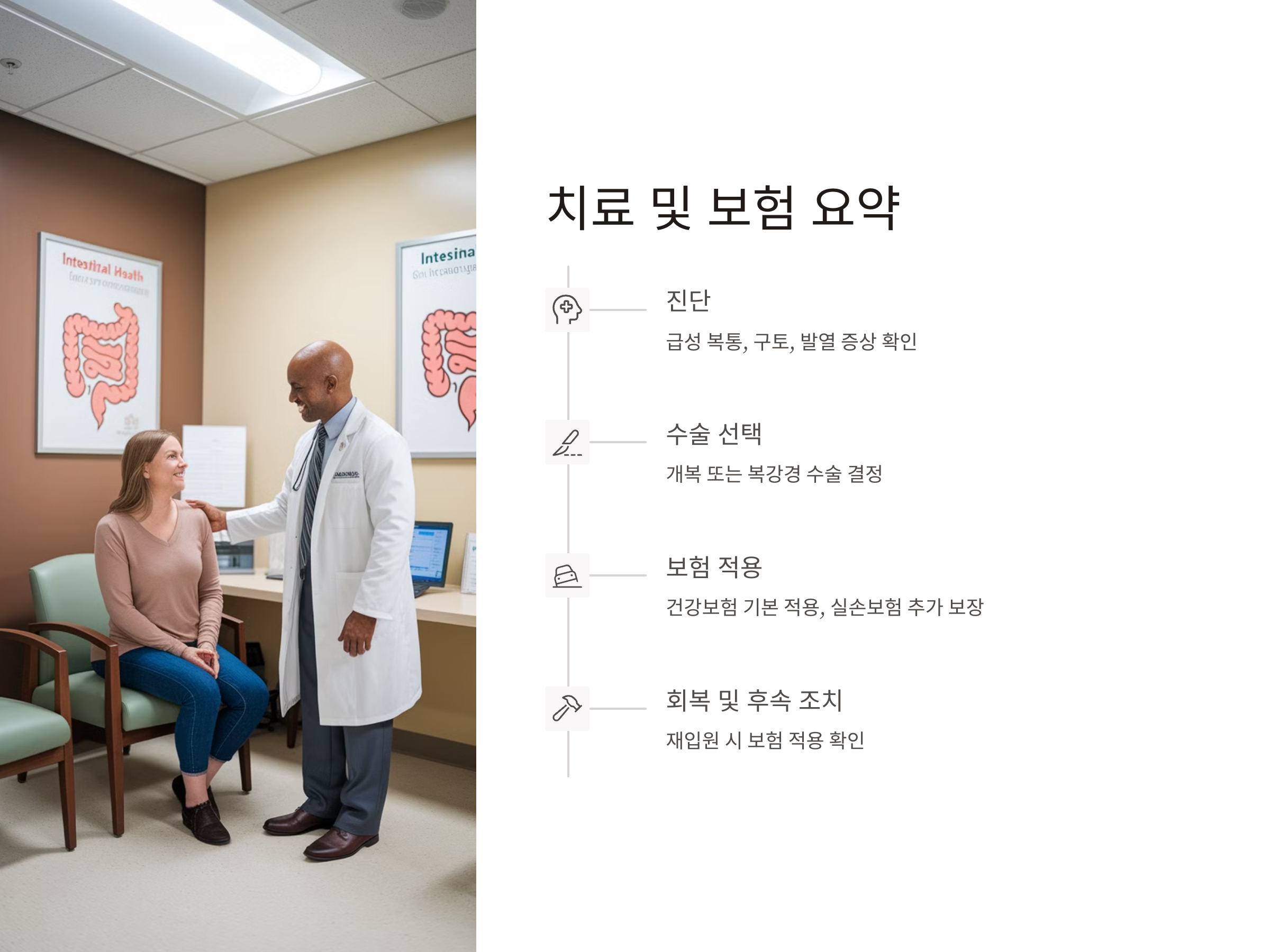 또한, 장 천공 치료 후 회복 과정에서 발생할 수 있는 재입원이나 추가적인 치료비도 보험에 포함될 수 있으므로, 이를 확인하는 것이 필요합니다. 보험 적용의 구체적인 내용은 병원이나 보험사와 상의하여, 환자가 최대한의 혜택을 받을 수 있도록 하는 것이 중요합니다.