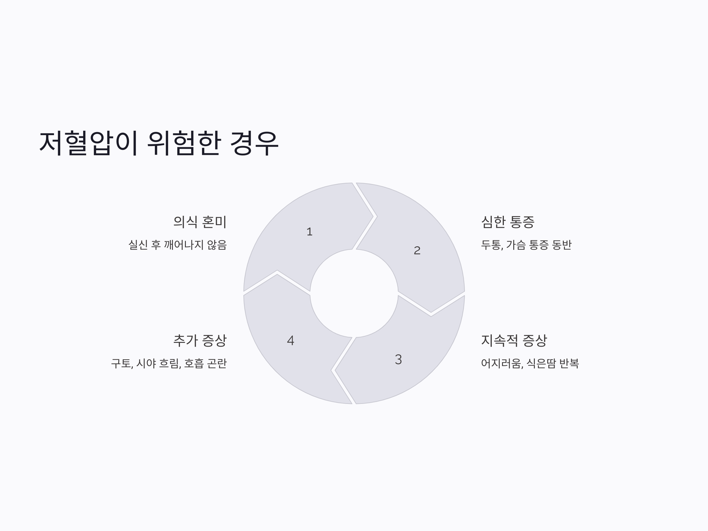 - 빈혈: 적혈구 수가 적거나 헤모글로빈 수치가 낮으면 혈액이 산소를 충분히 운반하지 못해 저혈압이 발생할 수 있습니다.