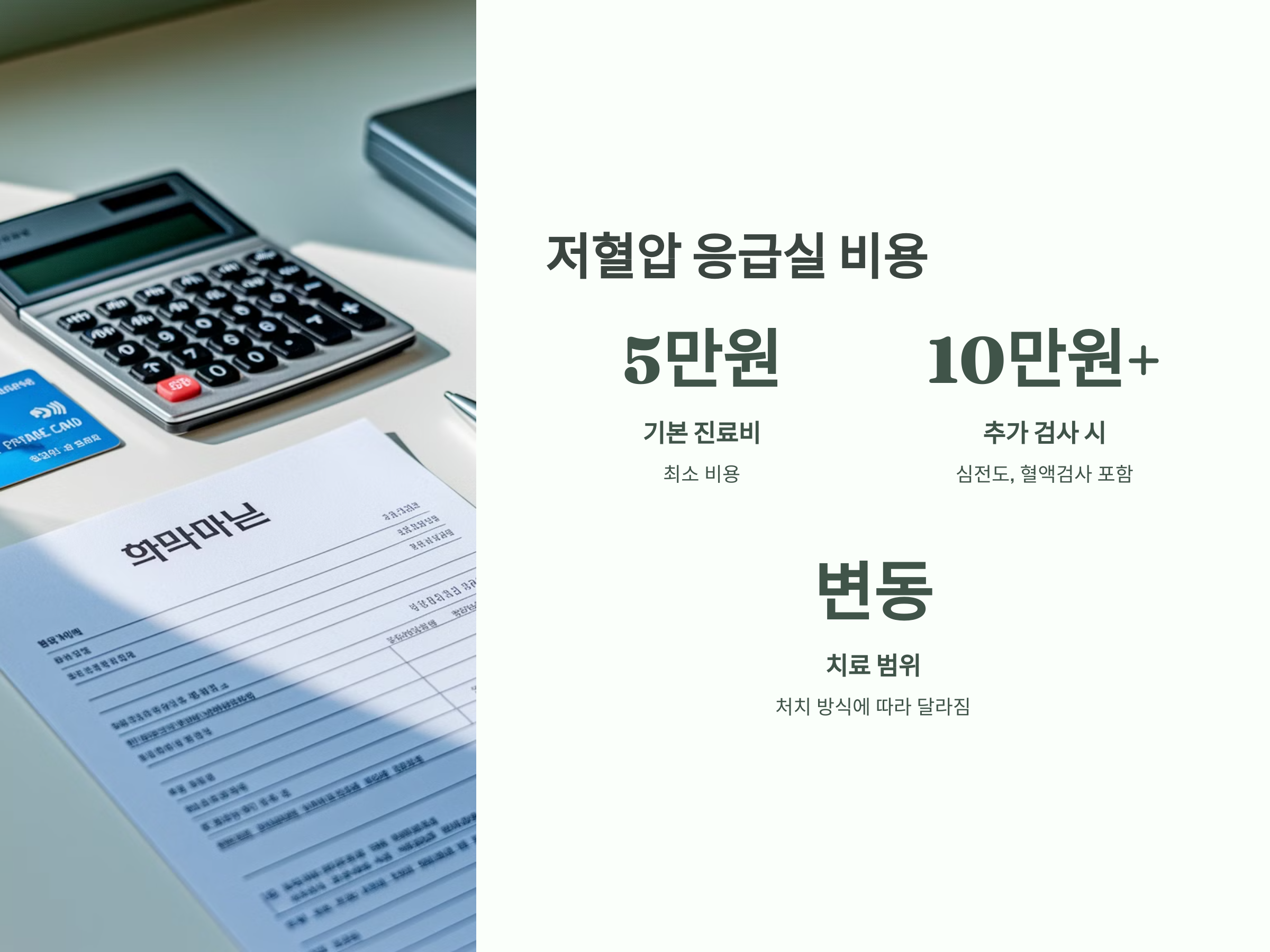 특히 혈압이 급격하게 떨어지는 상황에서는 심전도 검사, 혈액 검사, 혹은 다른 영상 검사를 진행할 수 있기 때문에 비용이 더 많이 발생할 수 있습니다. 이러한 검사들은 환자의 상태를 정확히 파악하기 위해 필수적일 수 있습니다. 건강보험이 적용되더라도, 일부 항목에서는 본인 부담금이 발생할 수 있기 때문에 실제 비용은 예상보다 높을 수 있습니다.