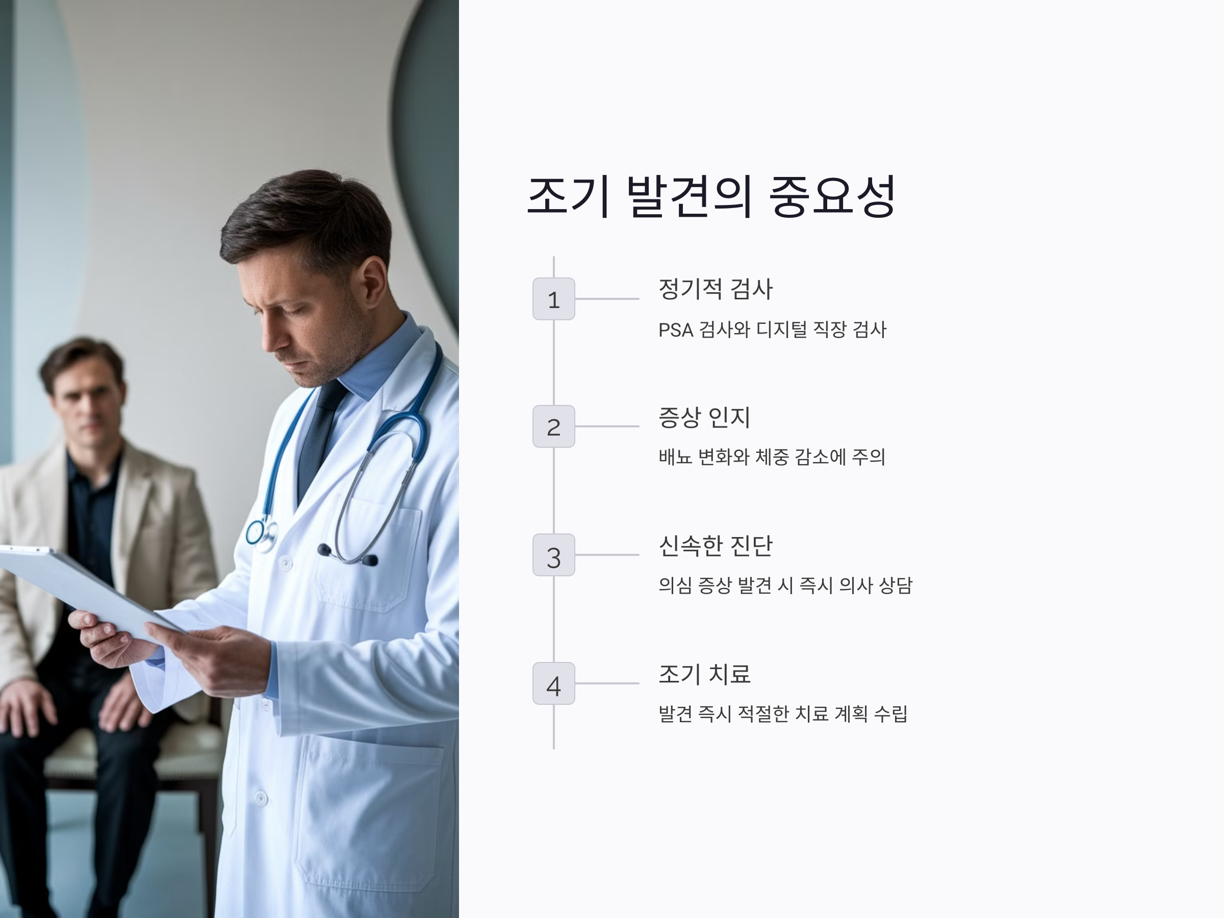 배뇨가 어려워지는 이유는 암이 전립선 주변의 신경이나 혈관을 압박하기 때문입니다. 이로 인해 배뇨를 조절하는 기능에 문제가 생기며, 결국 배뇨가 원활하게 이루어지지 않게 됩니다. 이런 증상은 암이 전립선에 국한된 초기 단계에서도 나타날 수 있으며, 치료가 지연되면 증상이 더욱 악화될 수 있습니다.