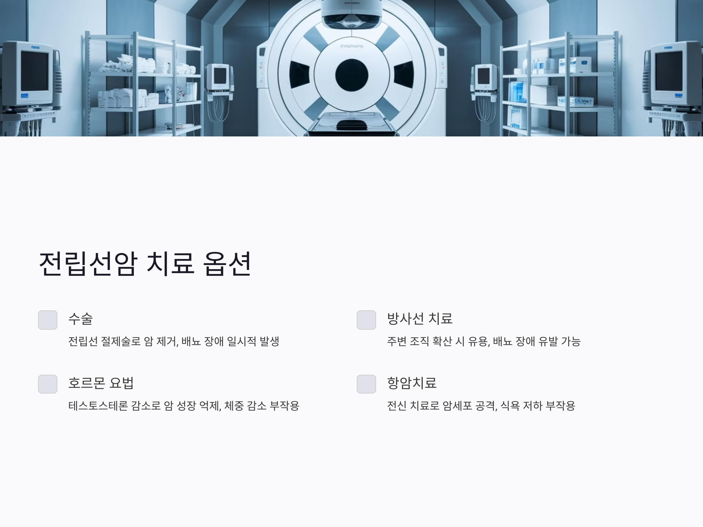 뇨 장애와 체중 감소를 예방하거나 완화할 수 있습니다. 건강한 생활습관을 유지하고, 정기적인 건강 검진을 통해 전립선암을 예방하고 조기에 발견하는 것이 중요합니다.
