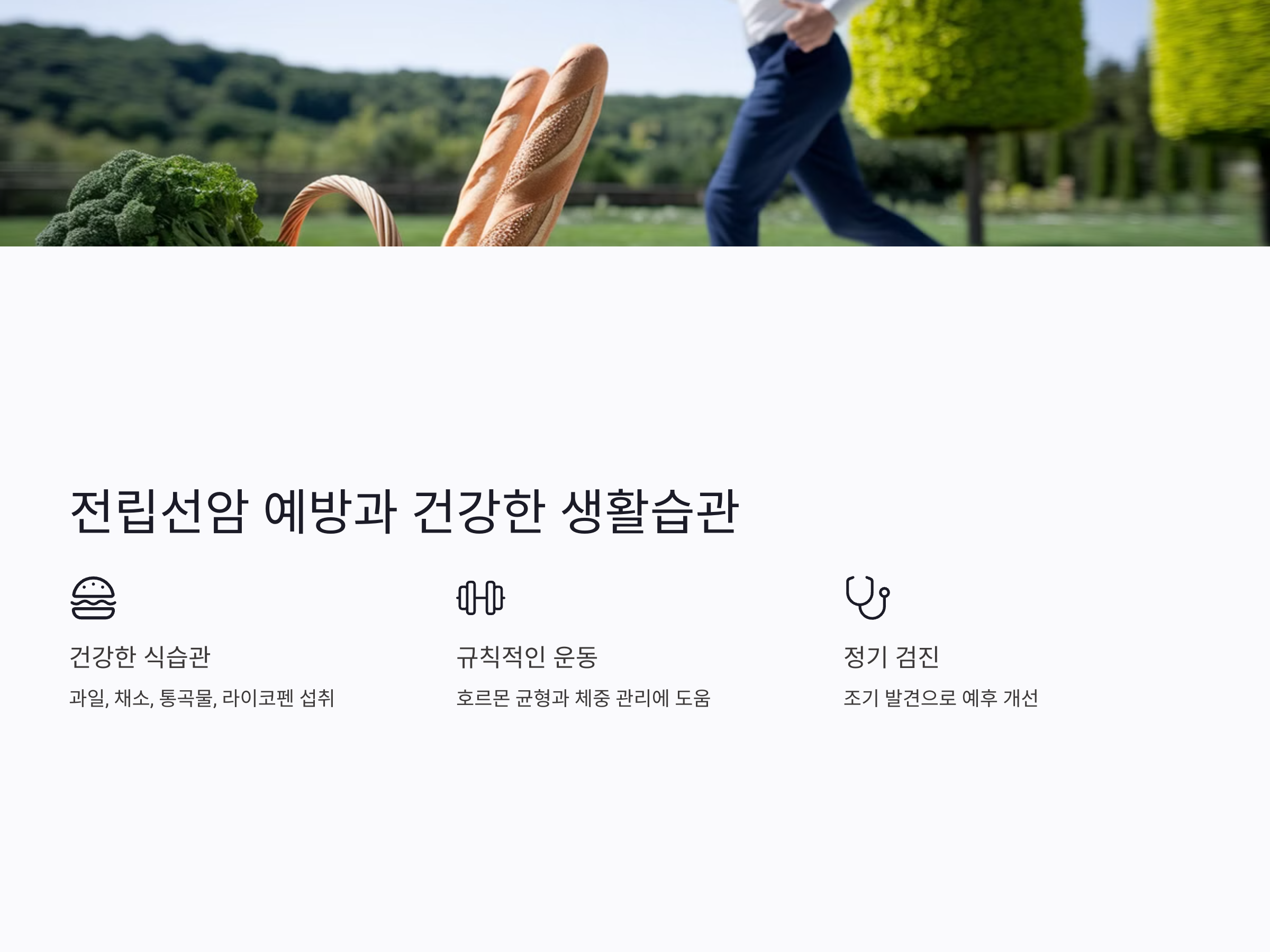 전립선암의 예방을 위해서는 몇 가지 생활습관을 개선하는 것이 도움이 될 수 있습니다. 건강한 식습관, 규칙적인 운동, 그리고 스트레스 관리는 전립선암 예방에 중요한 역할을 합니다. 또한, 정기적인 건강 검진을 통해 조기 발견하는 것도 예방에 큰 도움이 됩니다.