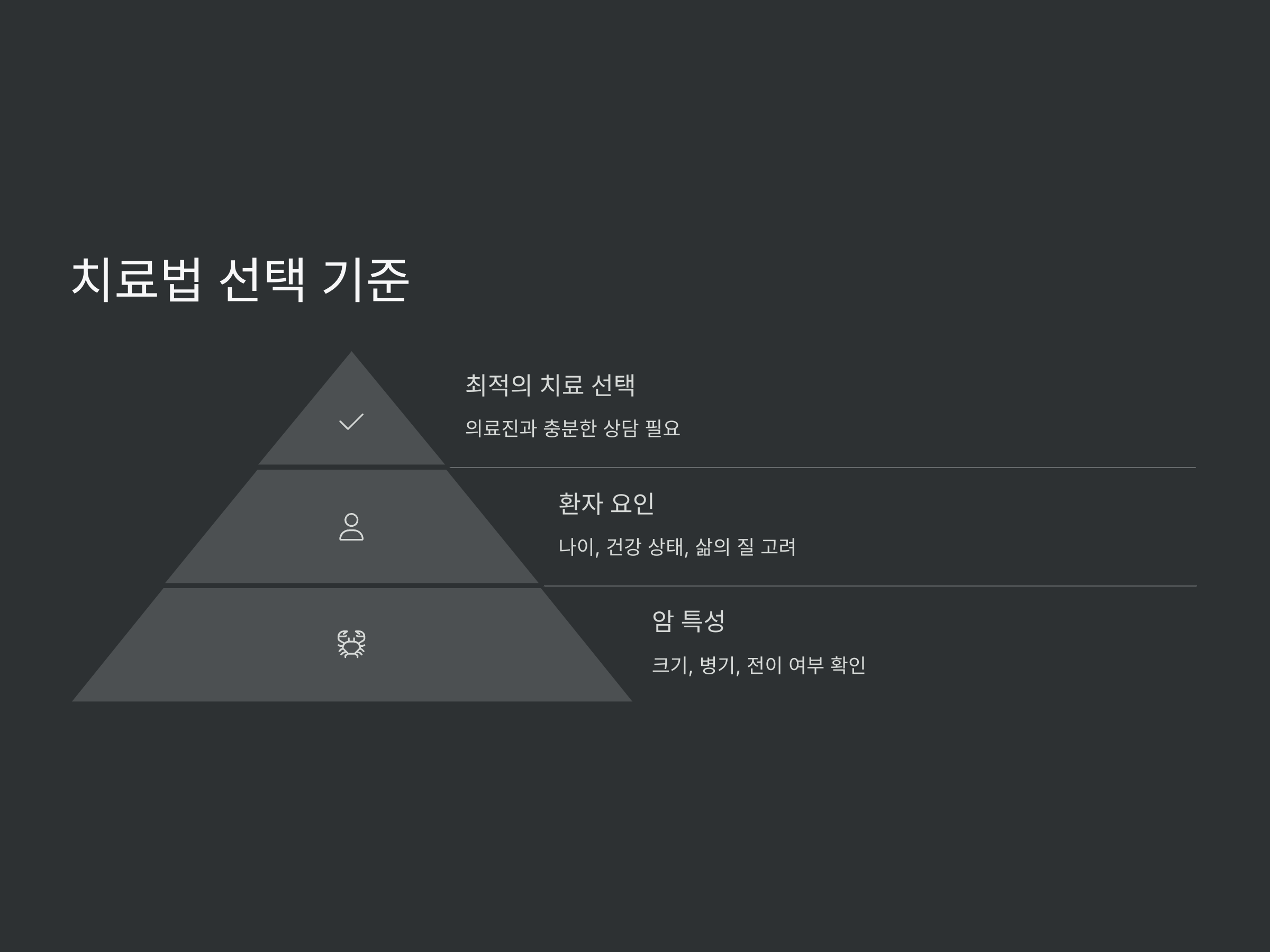 환자의 나이, 전립선암의 병기, 건강 상태 등을 고려하여 적합한 치료 방법을 선택해야 합니다. 치료 방법을 결정할 때는 반드시 의료진과 충분히 상담하고, 각 치료의 장단점을 이해한 후 결정을 내리는 것이 중요합니다.