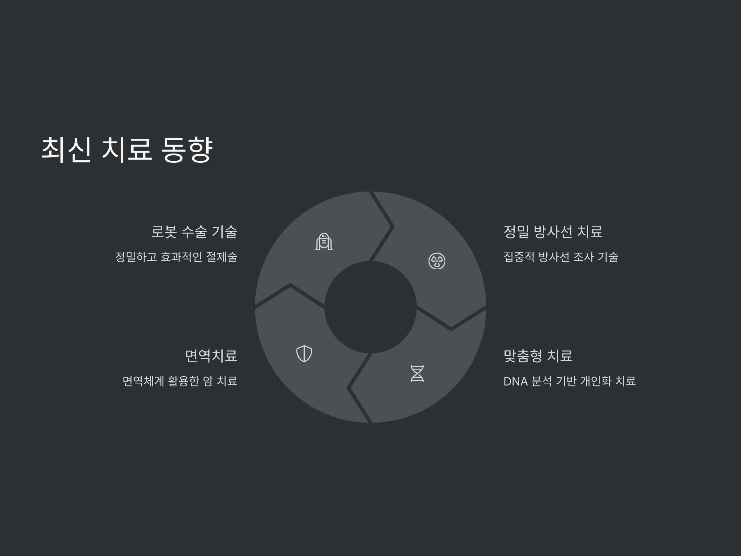 이와 함께, 전립선암의 조기 발견과 예방을 위한 연구도 활발히 진행되고 있으며, DNA 분석과 같은 새로운 진단 기법이 도입되고 있습니다. 앞으로는 더 많은 환자들이 개인에 맞는 맞춤형 치료를 받을 수 있게 될 것입니다.