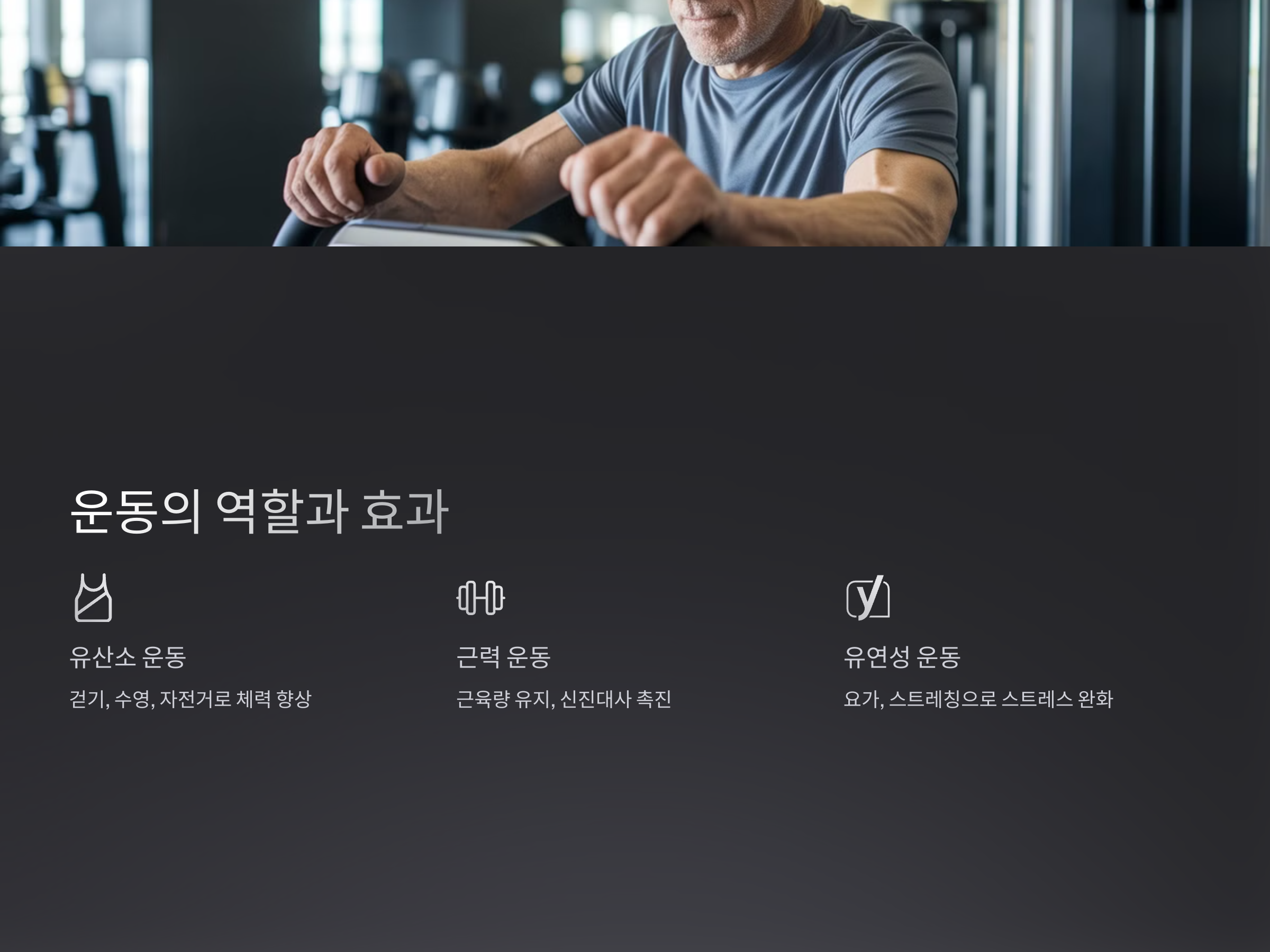 - 유연성 운동: 요가나 스트레칭을 통해 유연성을 향상시키고, 스트레스를 완화합니다.