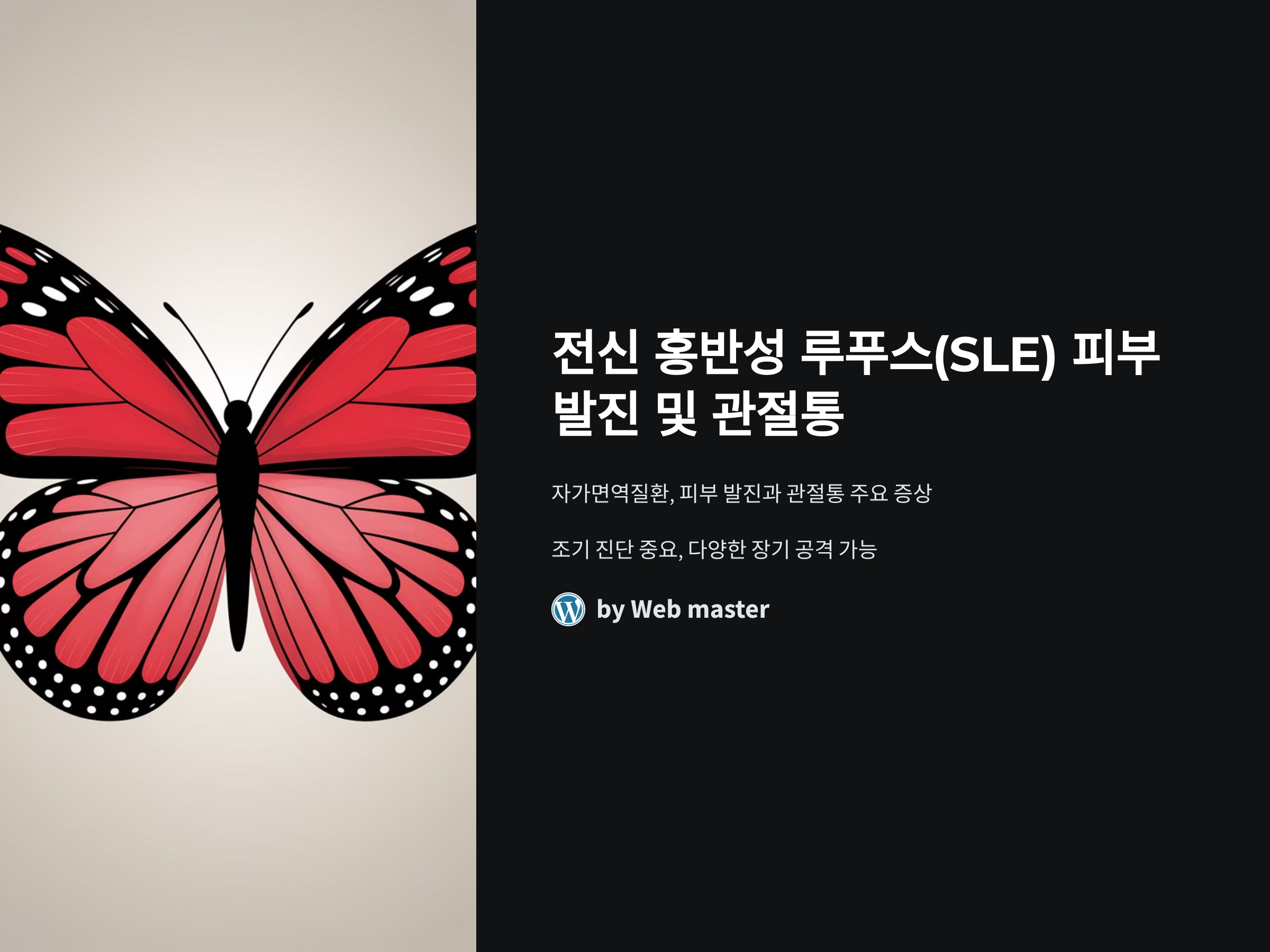 전신 홍반성 루푸스(SLE)는 피부 발진과 관절통을 주요 증상으로 하며, 적절한 치료와 관리가 이루어지지 않으면 질환이 악화될 수 있습니다. 나비 모양 발진과 관절통은 초기 증상일 수 있으므로, 이러한 증상이 나타나면 즉시 의료 전문가를 찾아 진단을 받는 것이 중요합니다.