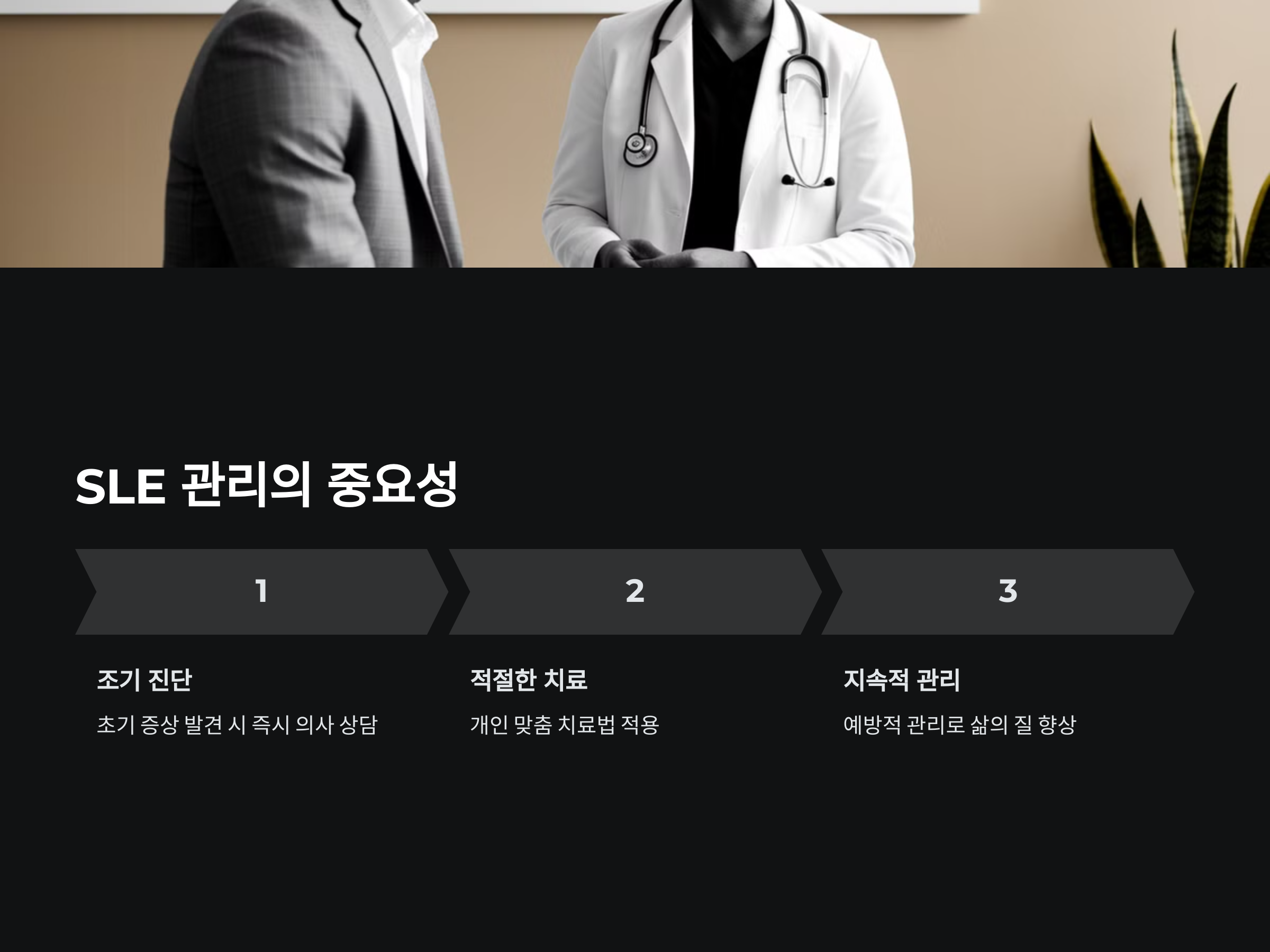 SLE의 증상은 개개인마다 다를 수 있으므로, 각자의 상태에 맞는 치료법을 적용하고, 예방적인 관리에 힘쓰는 것이 중요합니다. 건강한 삶을 유지하기 위해 지속적인 관리와 올바른 정보를 바탕으로 SLE를 잘 다루는 것이 필요합니다.