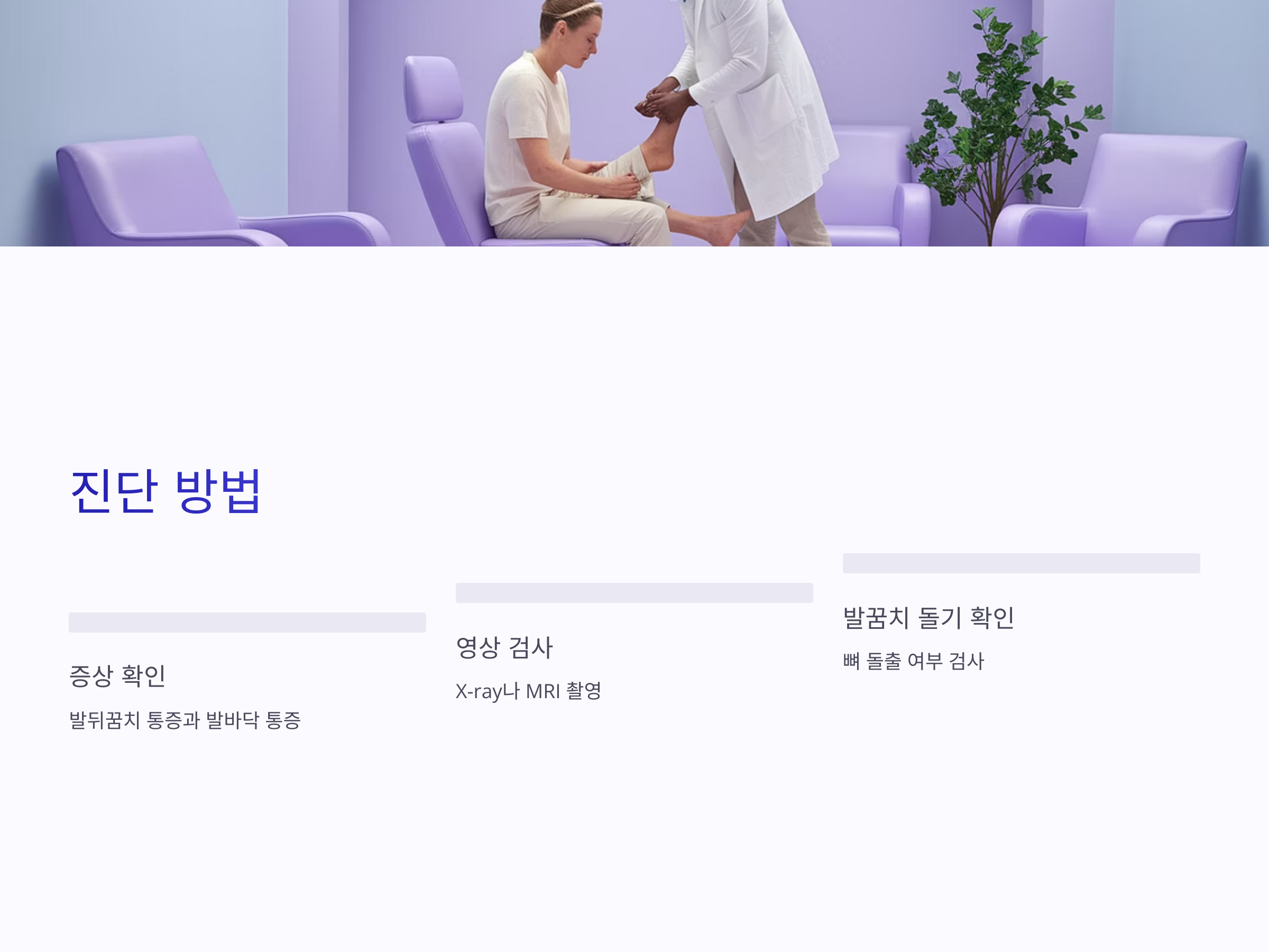 족저근막염은 기본적으로 발뒤꿈치 통증과 발바닥에 통증을 느끼는 것으로 진단할 수 있습니다. 그러나 정확한 진단을 위해서는 X-ray나 MRI 촬영을 통해 다른 질환이 아닌지 확인할 필요가 있습니다. 특히, 발꿈치에 뼈가 돌출된 ‘발꿈치 돌기’를 발견하는 경우도 있습니다.