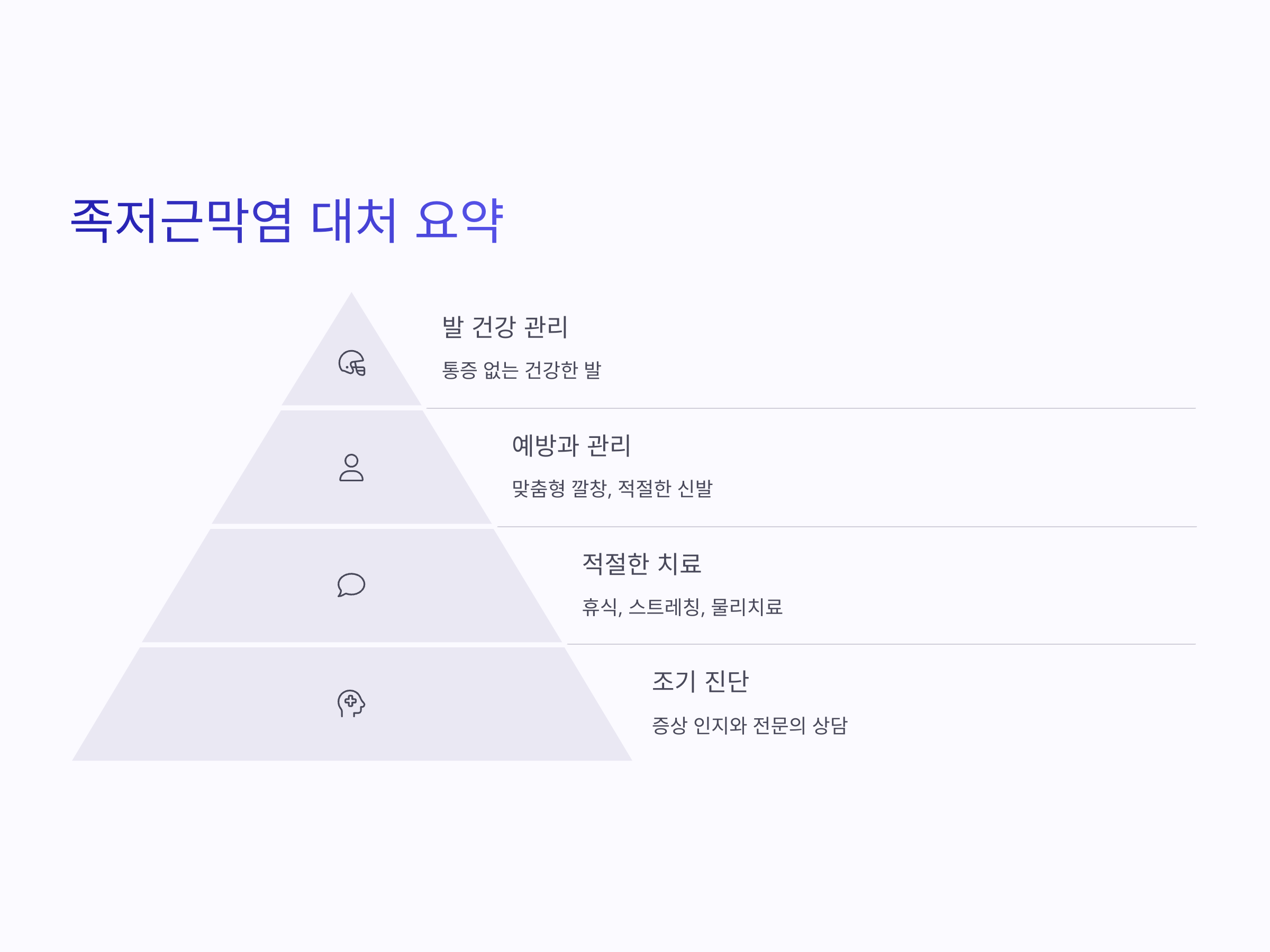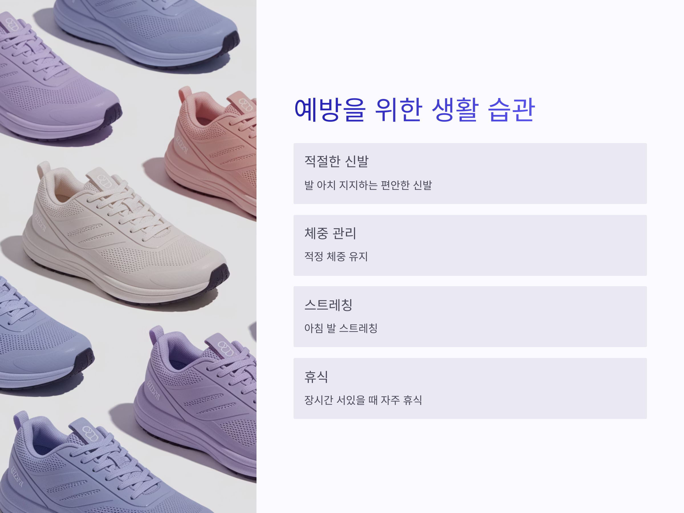 족저근막염이 완전히 치유되었다고 해서 방심하지 말고, 예방을 위한 꾸준한 관리와 생활습관 개선이 필요합니다.