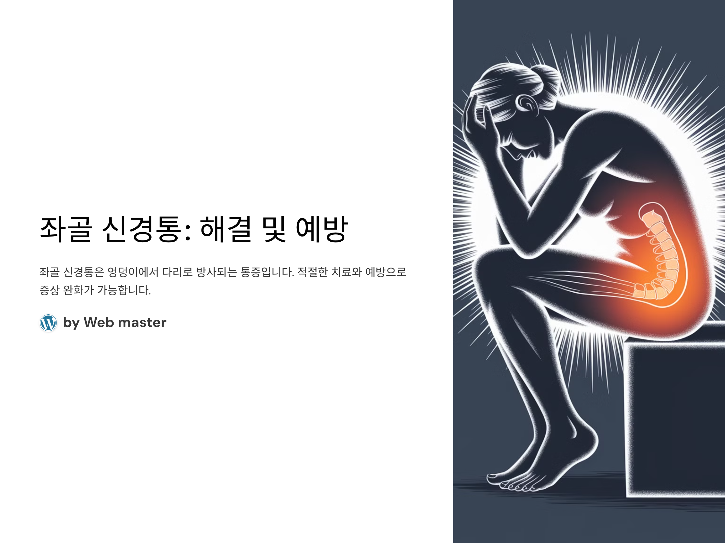 좌골 신경통은 엉덩이부터 다리로 방사되는 통증을 일으키는 질환으로, 주로 허리 디스크나 척추관 협착증 등의 문제에서 비롯됩니다. 통증을 완화하고 예방하려면 적절한 치료와 생활 습관이 필요합니다. 좌골 신경통을 예방하기 위해서는 규칙적인 운동, 올바른 자세, 체중 관리가 중요합니다. 만약 증상이 지속되거나 심해지면 전문적인 진단과 치료를 받는 것이 필요합니다.