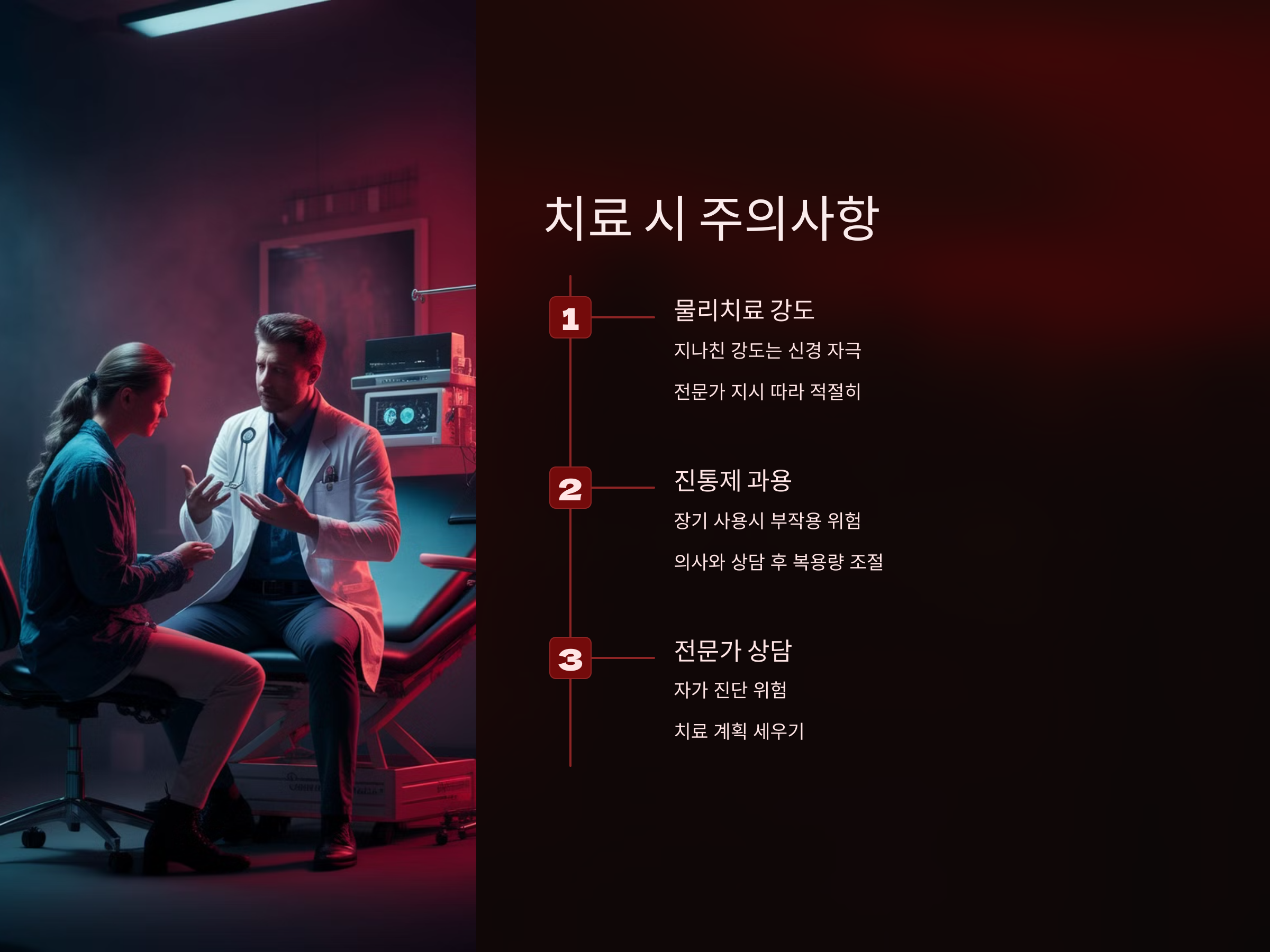 물리치료와 진통제를 병행하는 경우, 전문가와 상담 후 치료 계획을 세우는 것이 중요합니다. 자가 진단이나 임의로 약물을 복용하는 것은 위험할 수 있습니다.
