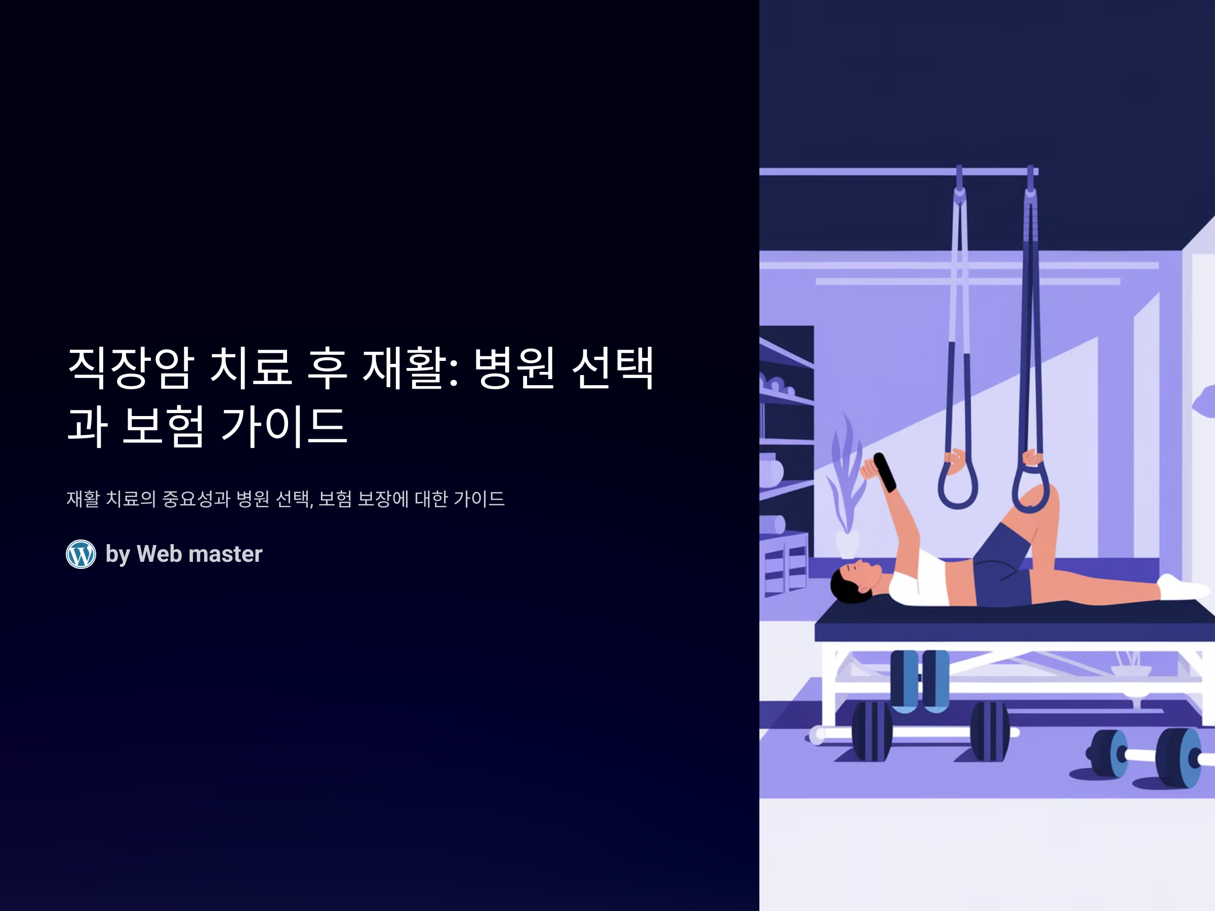 직장암 치료 후 재활 치료는 회복에 중요한 역할을 합니다. 재활 치료를 위해 입원할 병원과 보험 보장 여부를 충분히 확인하고, 적절한 병원과 보험을 선택하여 치료의 효과를 극대화할 수 있도록 해야 합니다. 직장암 치료 후의 재활은 단순한 신체 회복을 넘어서, 환자의 전반적인 삶의 질을 향상시키는 데 큰 도움이 됩니