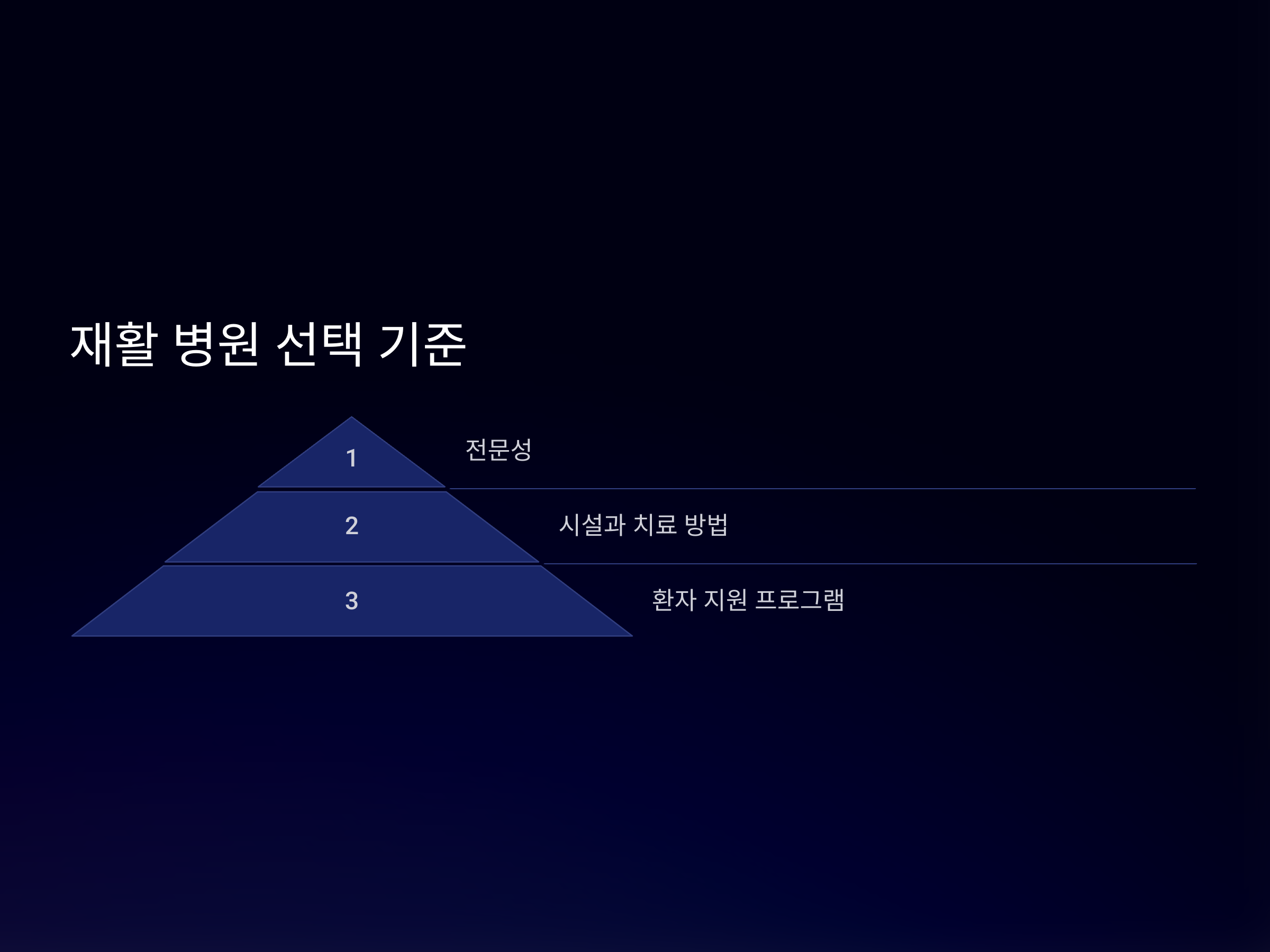 재활 병원을 선택할 때 고려해야 할 중요한 요소는 다음과 같습니다: